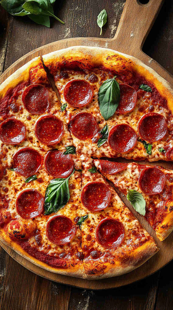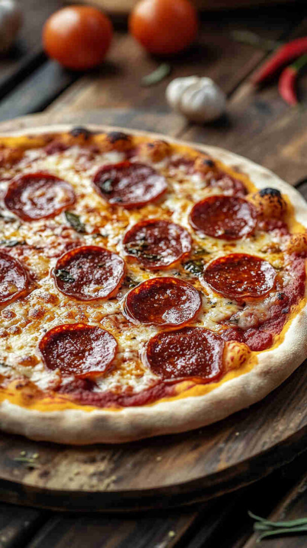 Crispy homemade Italian pepperoni pizza with tangy sauce, gooey mozzarella, and spicy curls—easy, delicious, crowd-pleasing perfection.