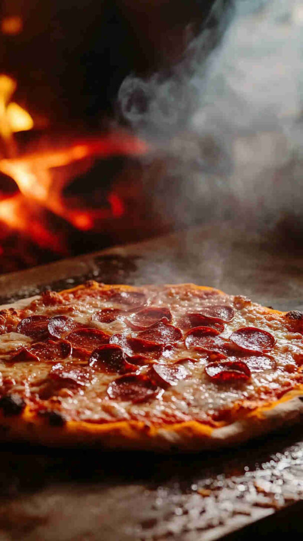 The sauce bursts with fresh tomato brightness and subtle garlic-herb notes that complement rather than overpower. Pepperoni adds that addictive spicy, smoky kick, and as it bakes, the edges cup and crisp while releasing flavorful oils that mingle with bubbling mozzarella.