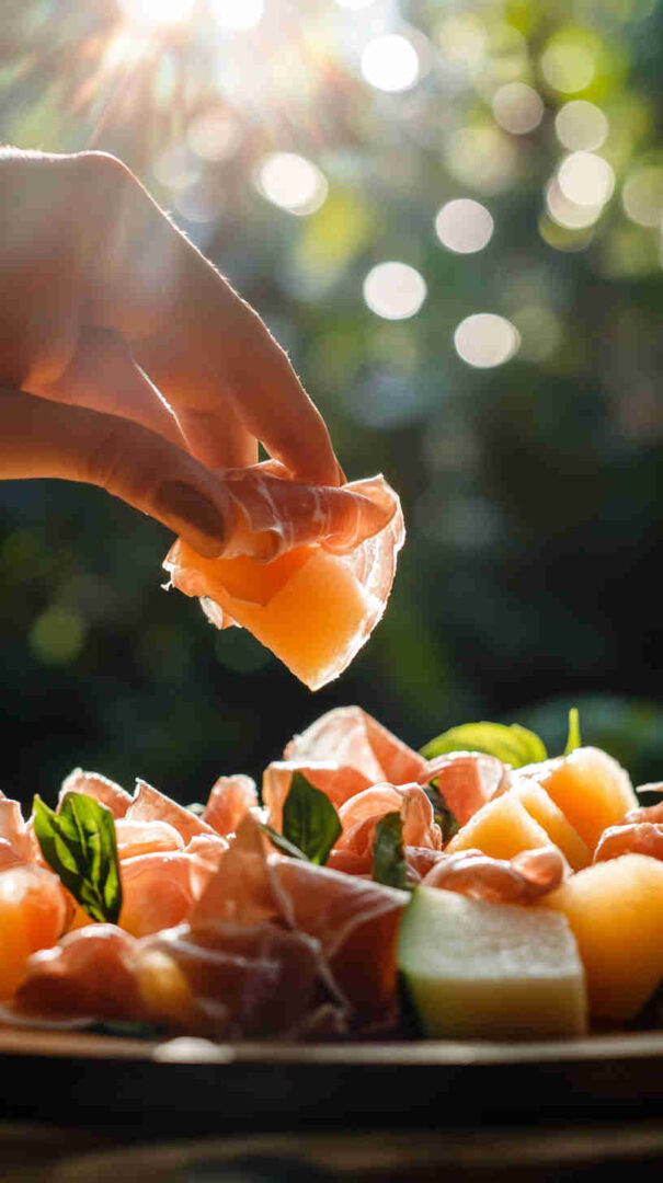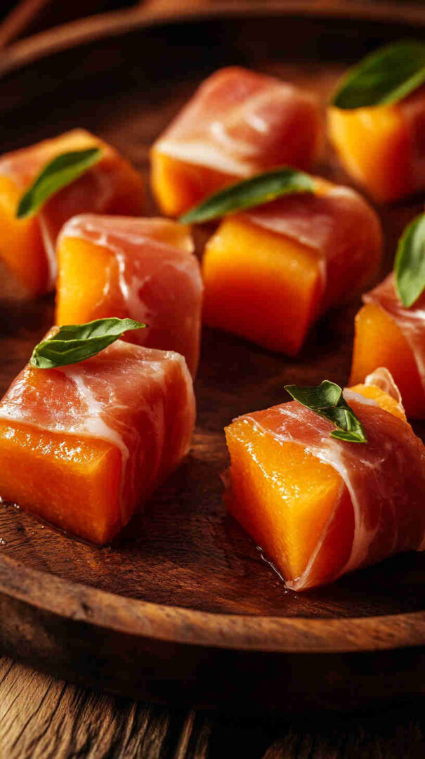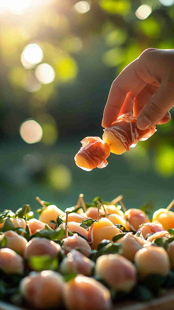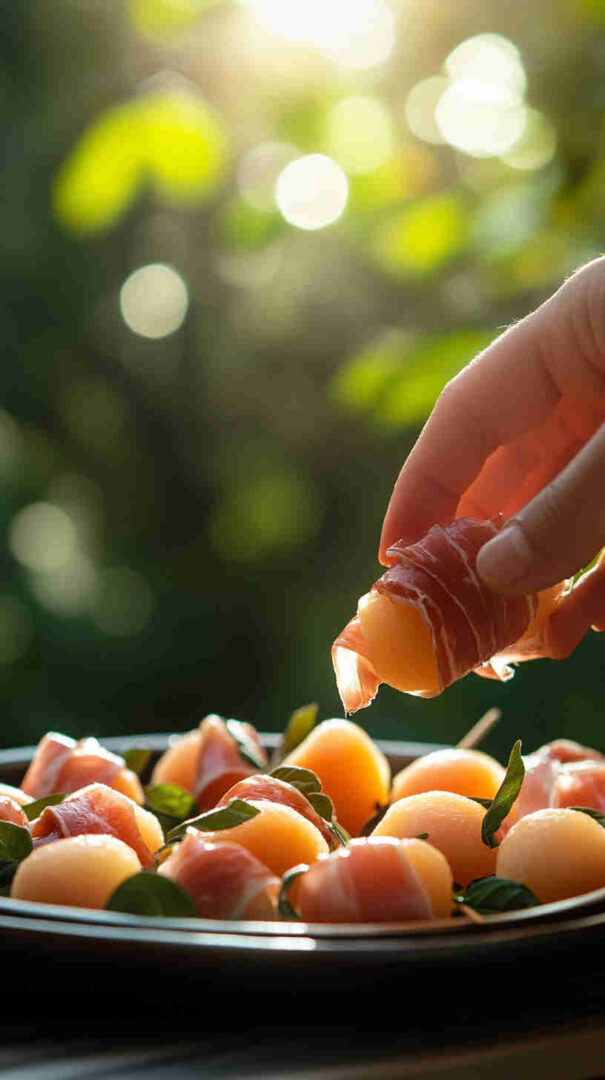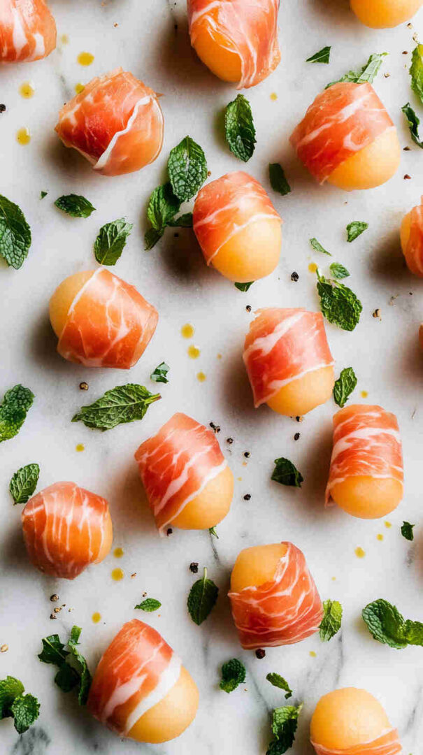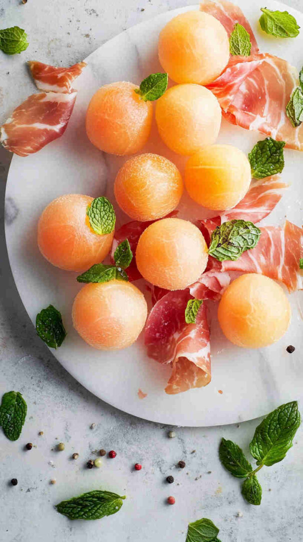 - Vegetarian: Wrap melon in thin cucumber ribbons or use plant-based “prosciutto” alternative.