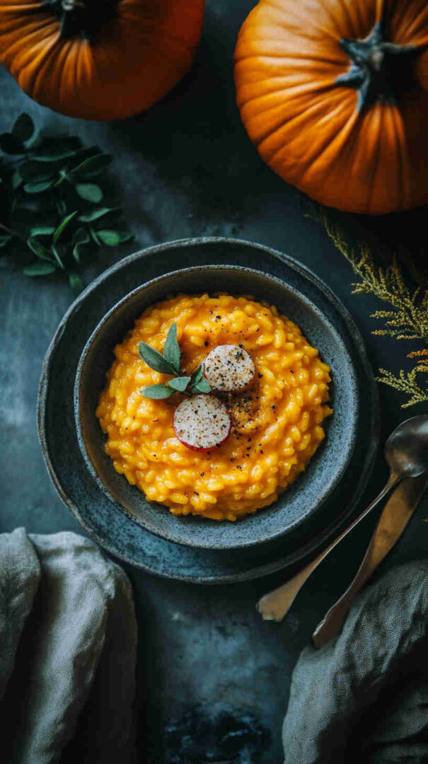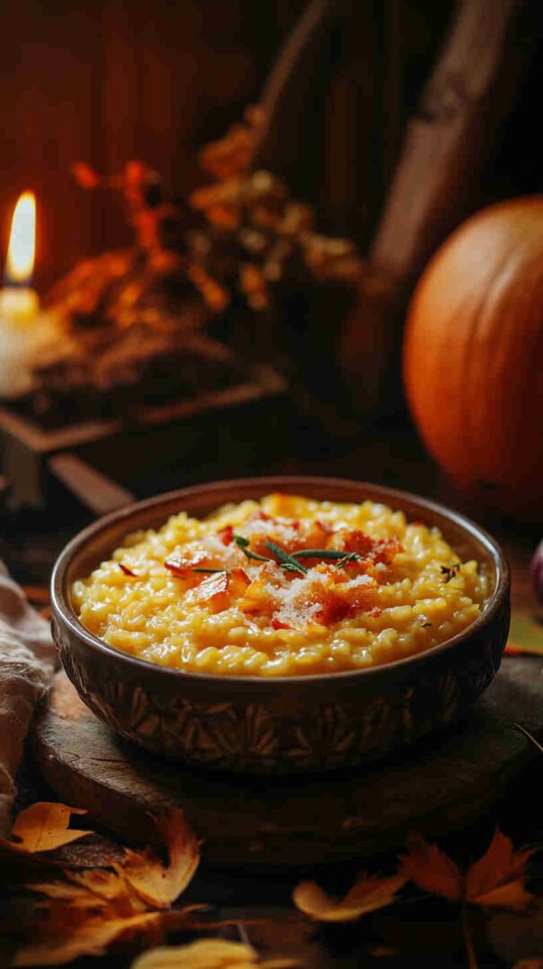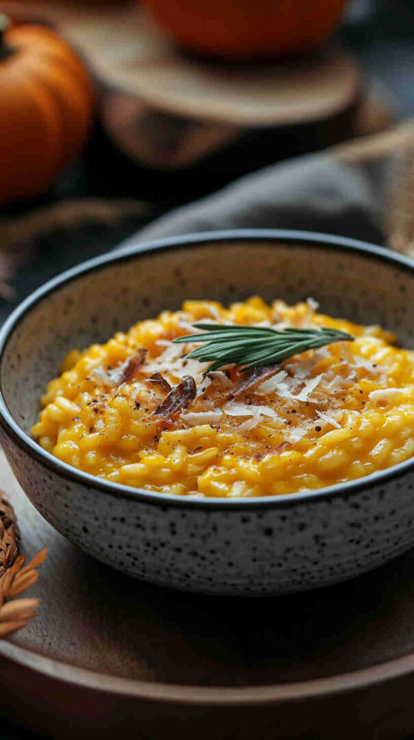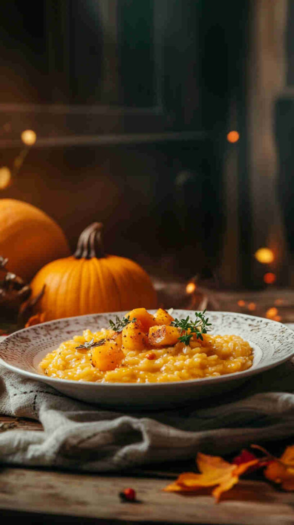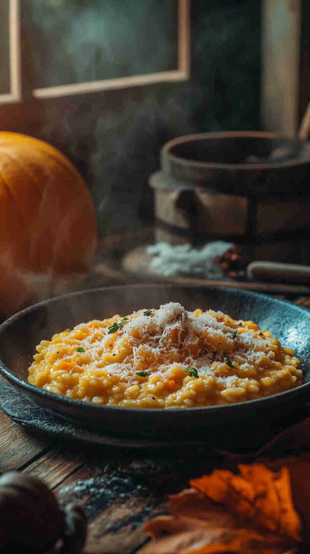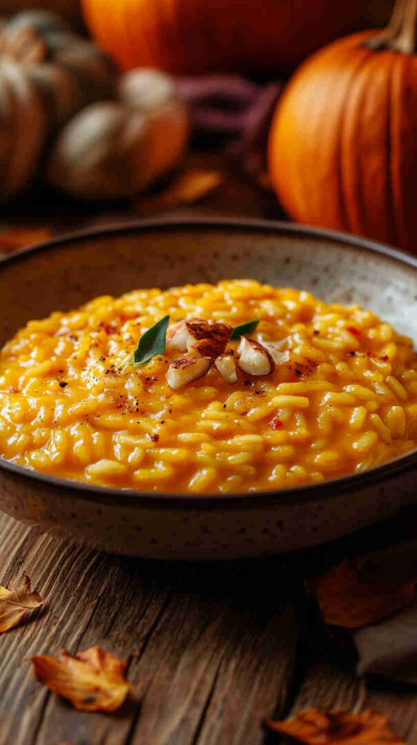Use Carnaroli for extra creaminess if available. Pumpkin sweetness varies—taste and adjust seasoning. For authentic Northern style, keep it simple—no heavy cream needed; starch does the work. Vegetarian as written; swap broth for vegan version.