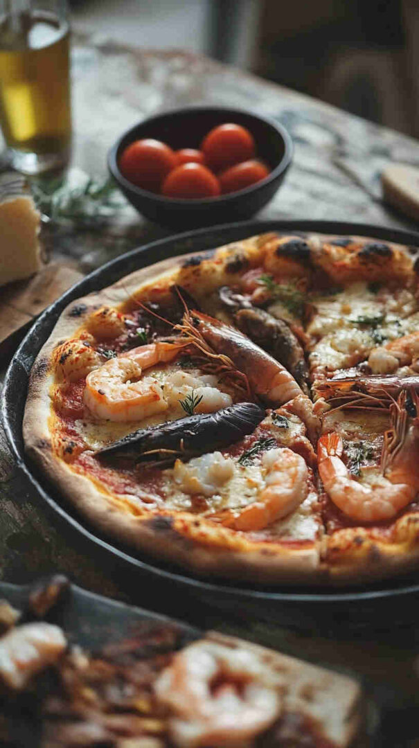 Imagine biting into a perfectly blistered, thin-crust pizza where the star is pristine, ocean-fresh seafood—no heavy cheese overload, just bright Mediterranean vibes. The combination of sweet shrimp, delicate calamari, and juicy shellfish creates a luxurious topping that feels restaurant-worthy but is surprisingly simple to pull off at home.