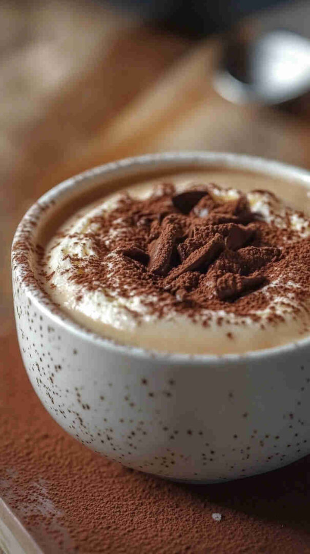 For a hot version, warm the milk and coffee mixture gently on the stove, then top with the mascarpone foam and cocoa. Adjust sweetness to your preference—tiramisu should taste balanced between coffee bitterness and creamy sweetness. Serve responsibly if including alcohol. This drink pairs wonderfully with biscotti or as a stand-alone dessert.