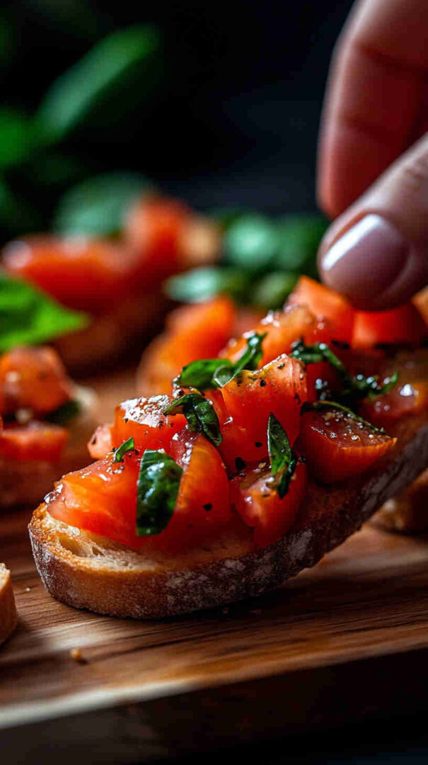 Use only the ripest, in-season tomatoes for the best sweetness and texture — Roma or vine-ripened work wonderfully as they hold their shape when chopped. Let the tomato mixture sit (macerate) for 15-30 minutes so the flavors meld and juices release naturally.