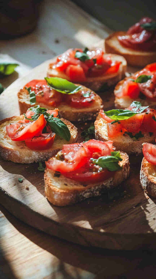 This classic Italian Tomato and Basil Crostini features juicy ripe tomatoes marinated with fresh basil, garlic, and extra-virgin olive oil, generously spooned over crunchy garlic-rubbed toasts. It’s an effortless, vibrant appetizer that celebrates summer’s best produce, perfect for parties, casual gatherings, or as a delightful starter to any Italian meal.