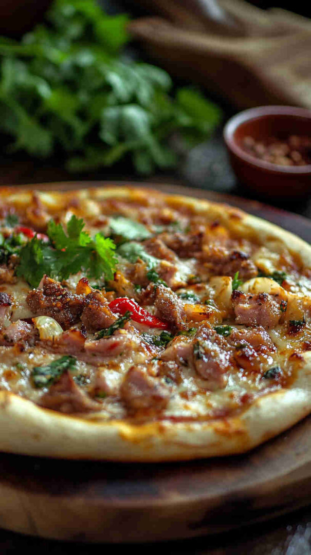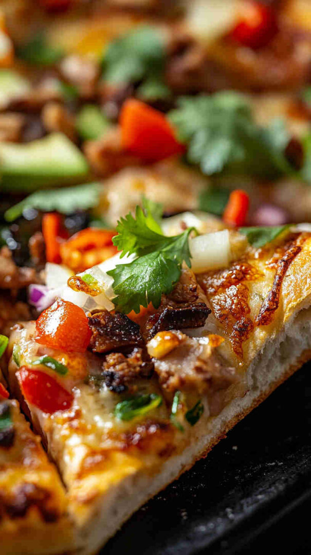 - Slice, serve, and savor—cut into wedges and dive in while hot—the combo of melty cheese, spicy pork, crunchy pickles, and herbs is pure fusion joy!