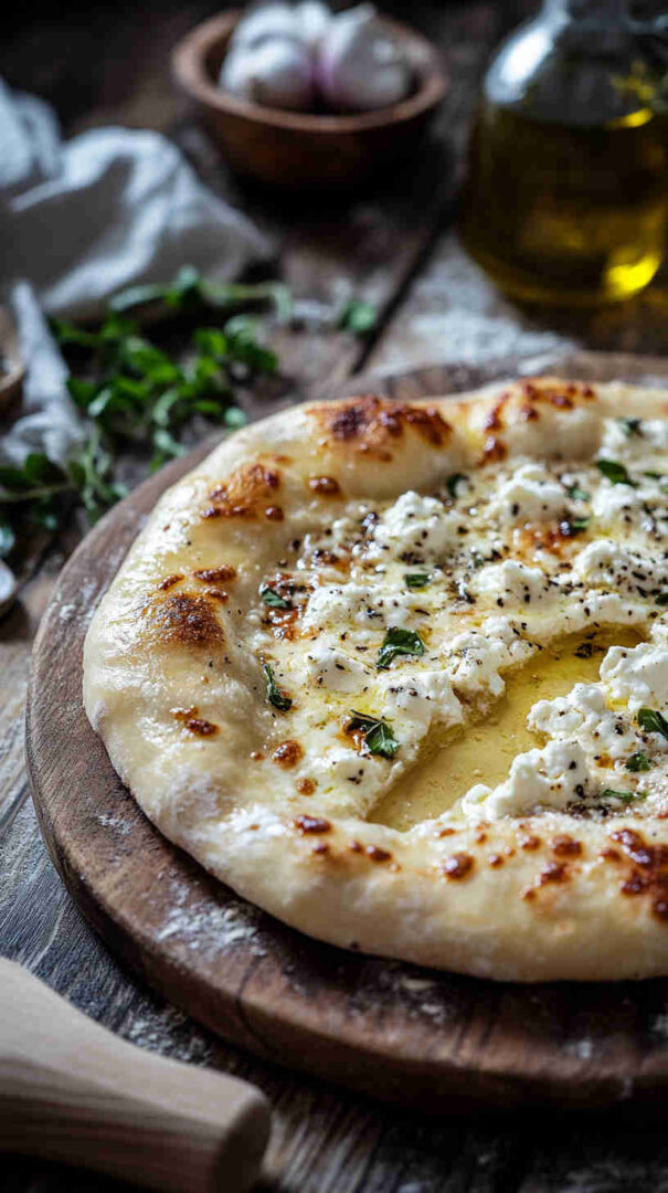 This recipe is wonderfully adaptable. For a more traditional Roman-style pizza bianca, keep it ultra-simple with just ricotta, olive oil, salt, and pepper—no mozzarella. Add sautéed spinach, caramelized onions, or roasted garlic for earthy depth.