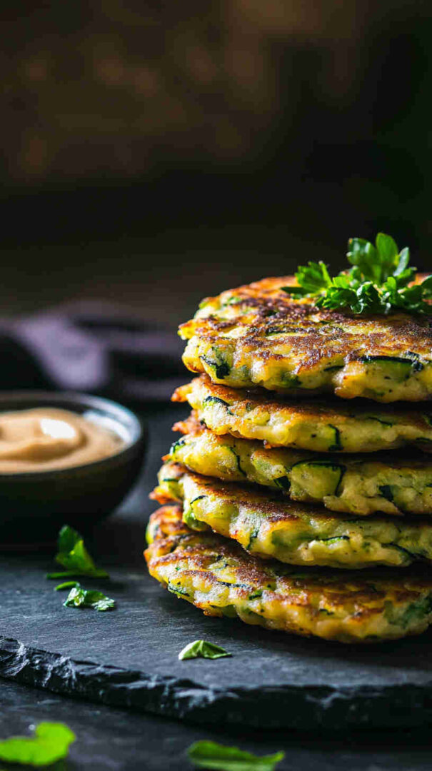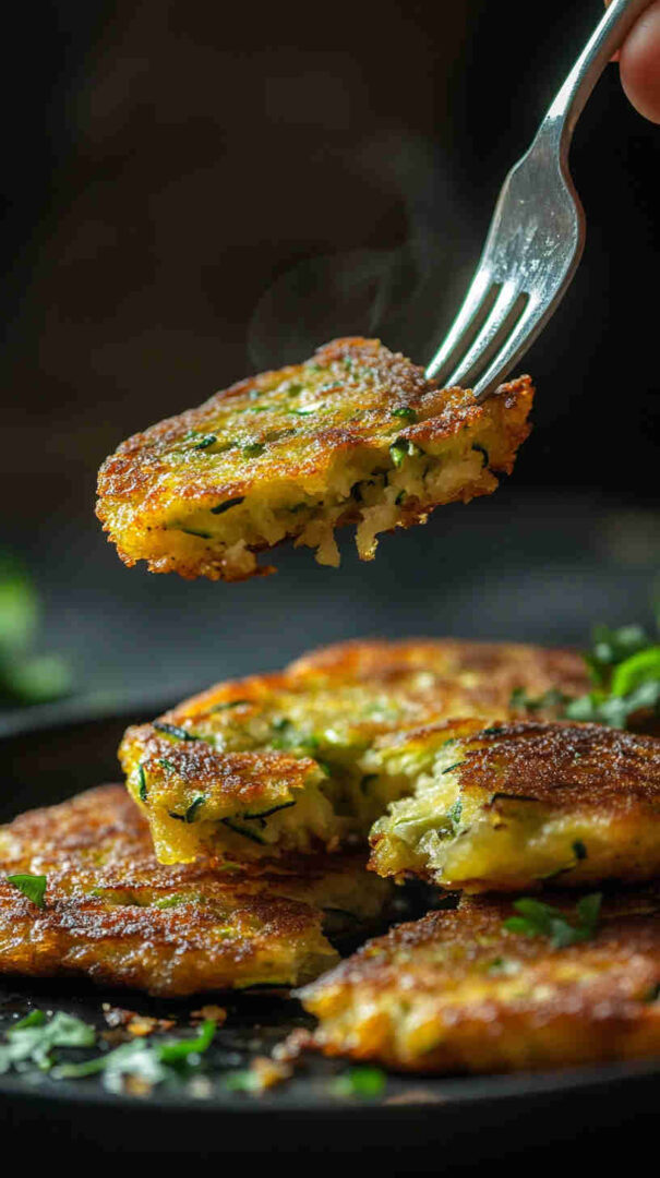 Grate the zucchini and salt it generously — then really squeeze out every drop of moisture using a clean kitchen towel or cheesecloth; this is the secret to non-soggy, crispy fritters. Don’t overmix the batter to keep them light and tender.