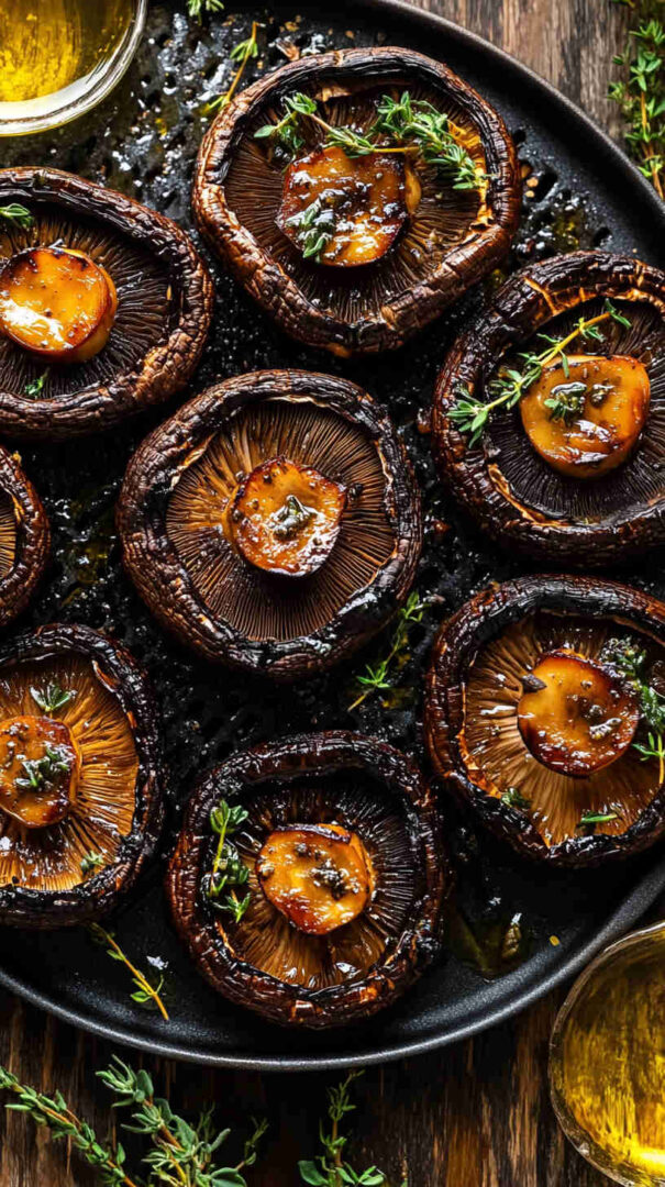 Fresh Portobello mushrooms are the star — choose large, firm caps with smooth, dark brown gills for the meatiest texture and best flavor absorption. Balsamic vinegar brings a tangy sweetness that balances the earthiness beautifully while helping tenderize.