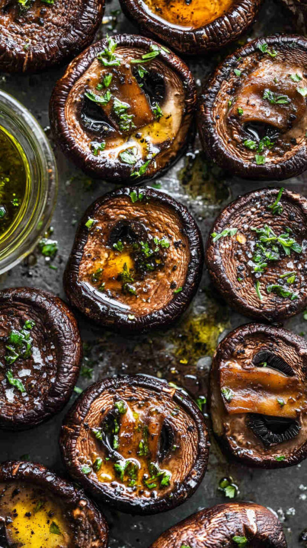 Stuff the caps before cooking with spinach, feta, tomatoes, or vegan cheese for a Caprese-style treat. Try different herbs like rosemary, oregano, or fresh minced garlic instead of powder. For a steak-like vibe, brush with vegan Worcestershire sauce. Use cremini or button mushrooms if Portobellos aren’t available — just reduce cooking time slightly.