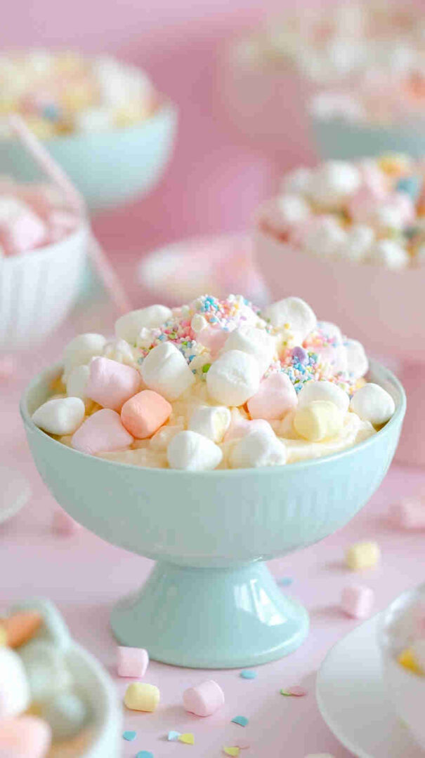 Chill for at least 2-4 hours so marshmallows get pleasantly soft and flavors mingle. Serve in clear cups or bowls to show off the pretty rainbow layers – kids go wild for the visuals! For extra giggles, let them add their own sprinkle topping just before eating.