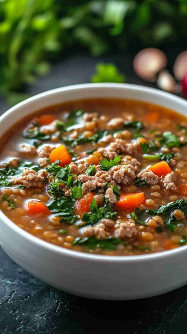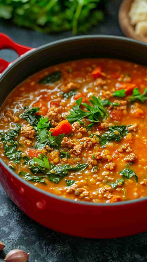 This Lentil Soup with Ground Turkey and Spinach is the ultimate comfort food that’s both nourishing and satisfying. Packed with lean protein from ground turkey and lentils, plus iron-rich spinach, it delivers a hearty bowl of goodness without feeling heavy.