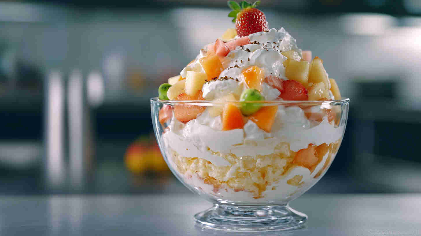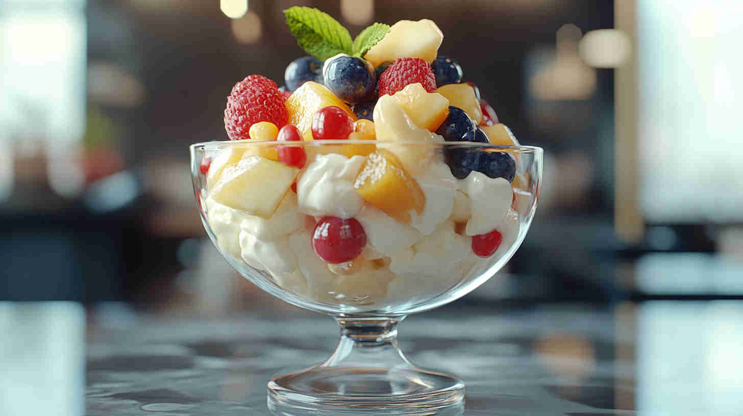 - When ready to serve, give it a light stir, spoon into a chilled serving bowl, and garnish with a few whole maraschino cherries and a sprinkle of extra coconut. Watch everyone’s eyes light up as they take that first refreshing bite!