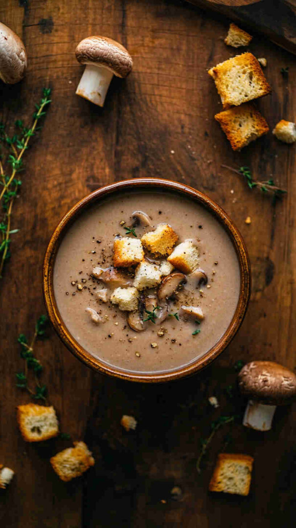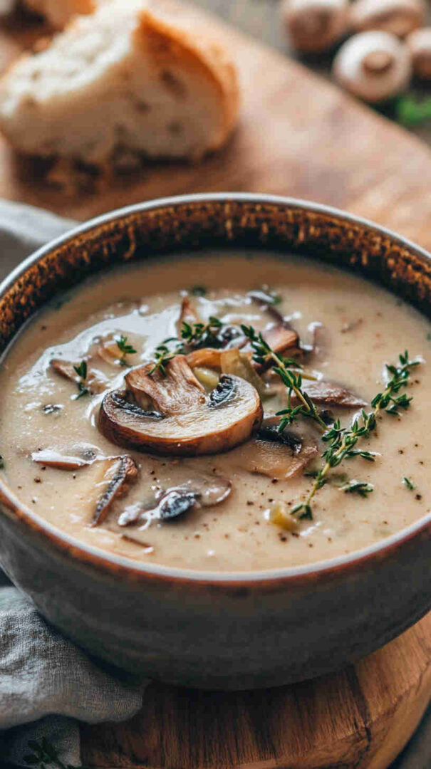 Browning the mushrooms first is the single biggest flavor booster—don’t rush it. Potato is the budget secret to creaminess without heavy cream. Soup thickens as it sits, so thin with broth when reheating. Naturally gluten-free; vegan with oil and plant milk.