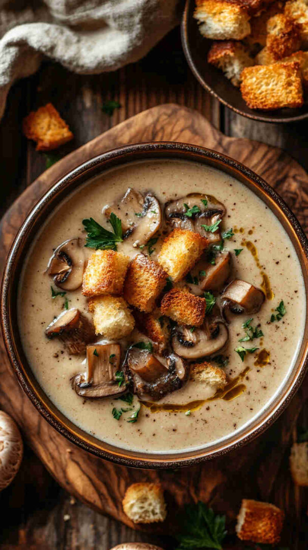 The combination of caramelized mushrooms, subtle garlic, and potato-thickened broth gives it body and richness that makes every spoonful feel indulgent. It’s ready in about 40 minutes, requires almost no active effort after the initial sauté, and works beautifully as a light lunch, cozy dinner starter, or even a meal on its own with crusty bread.