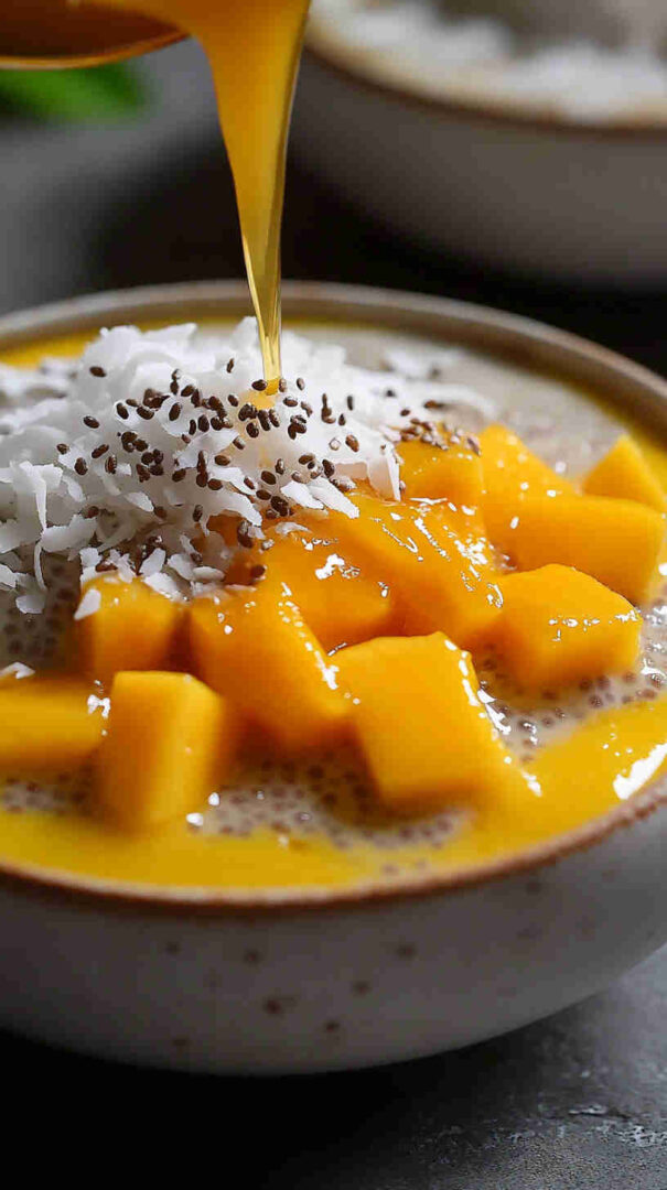 - For a smoother pudding, blend half the mango into the base before adding chia seeds.