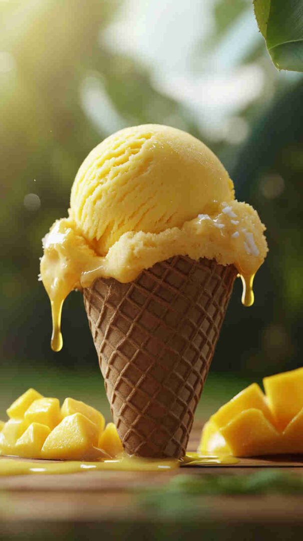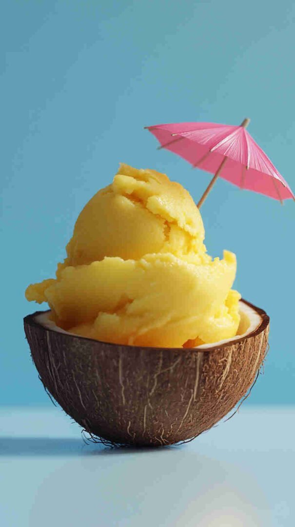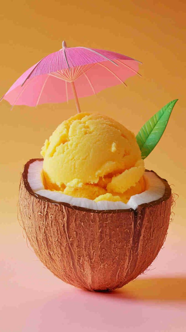 - Serve with love and sunshine — Scoop into bowls or cones, top with toasted coconut, fresh mango chunks, mint leaves, or a drizzle of extra maple syrup. Close your eyes, take a bite, and pretend you're on a tropical beach — pure bliss!