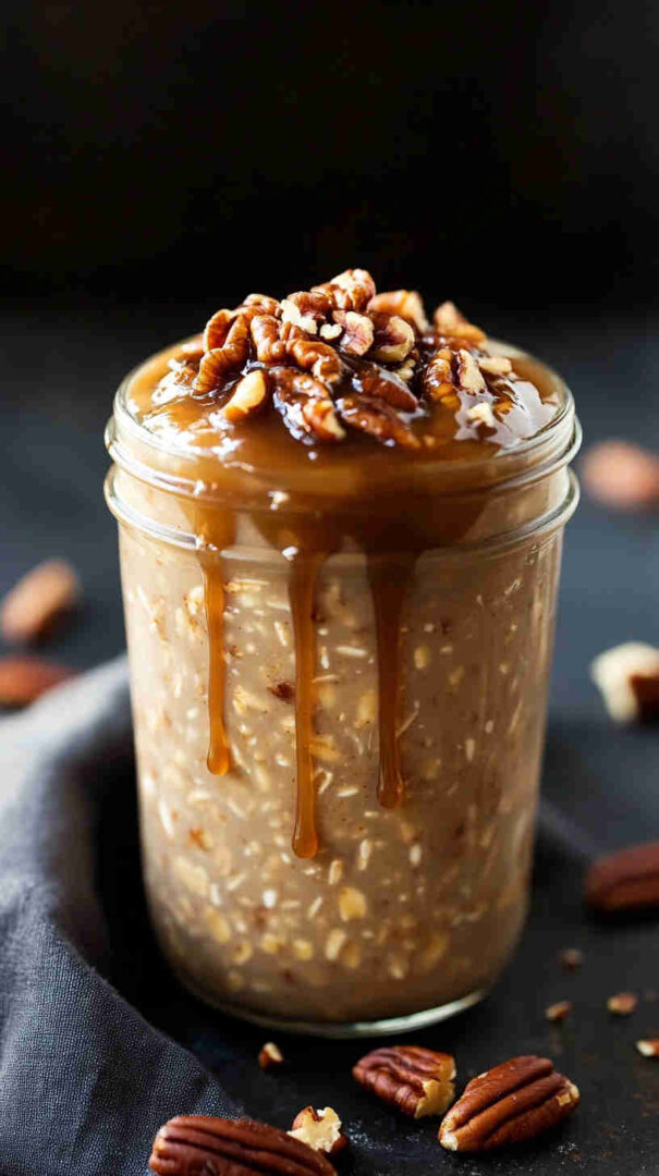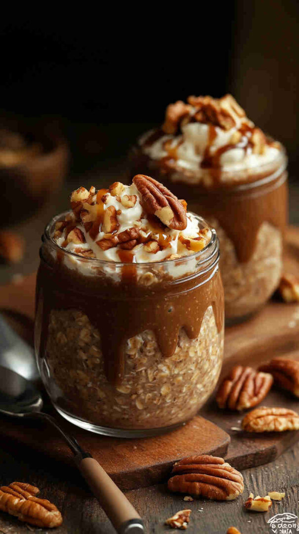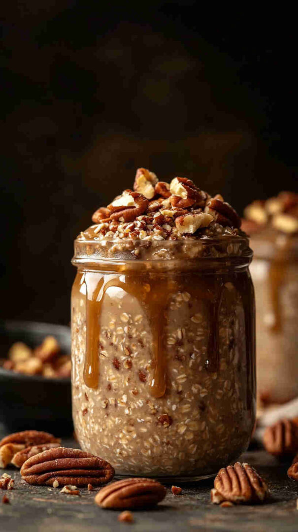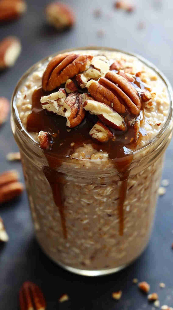 Creamy maple pecan overnight oats—cozy, no-cook breakfast with toasted nuts and warm cinnamon.