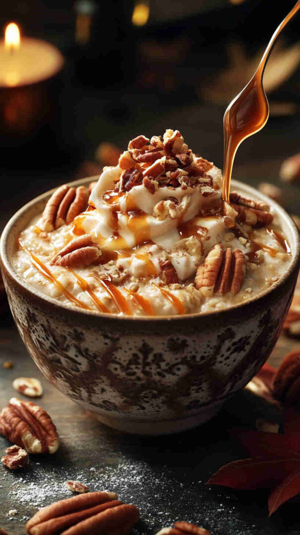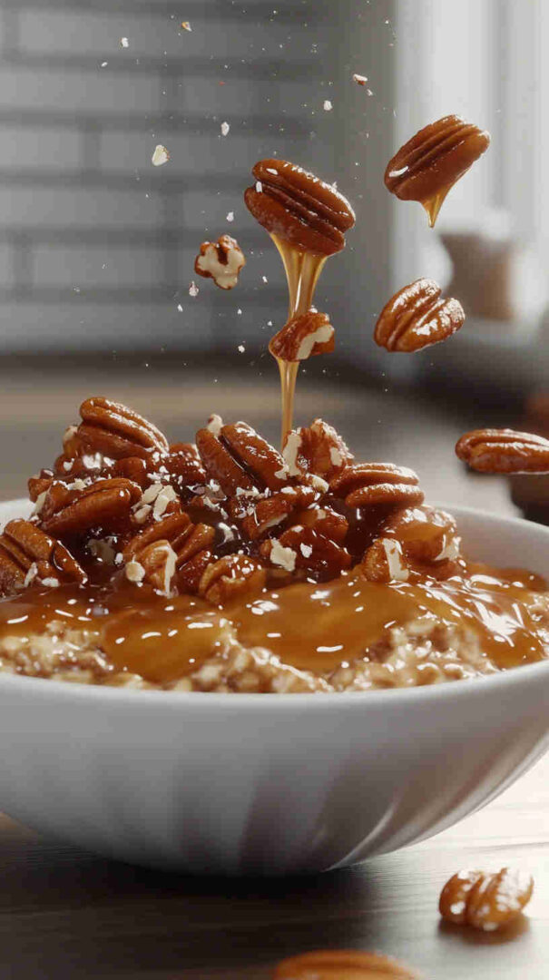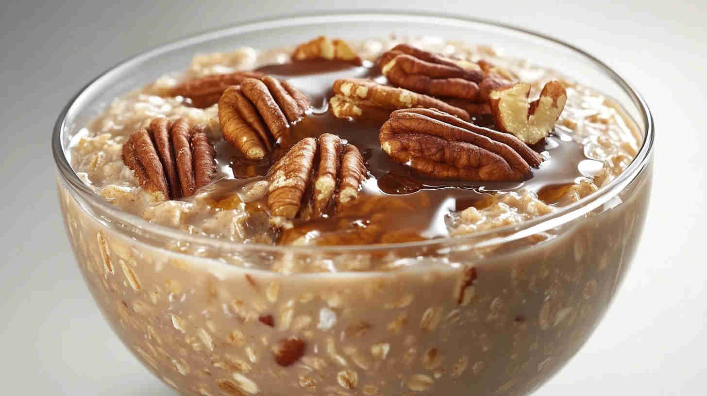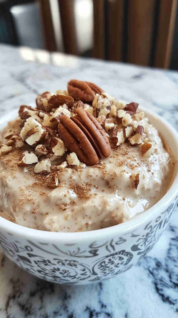The oats become velvety and creamy, the maple syrup infuses deep, authentic sweetness, cinnamon adds that classic bakery warmth, and toasted pecans bring irresistible crunch and buttery richness in every bite. It’s high in fiber, protein (especially with Greek yogurt), and healthy fats, keeping you satisfied for hours.