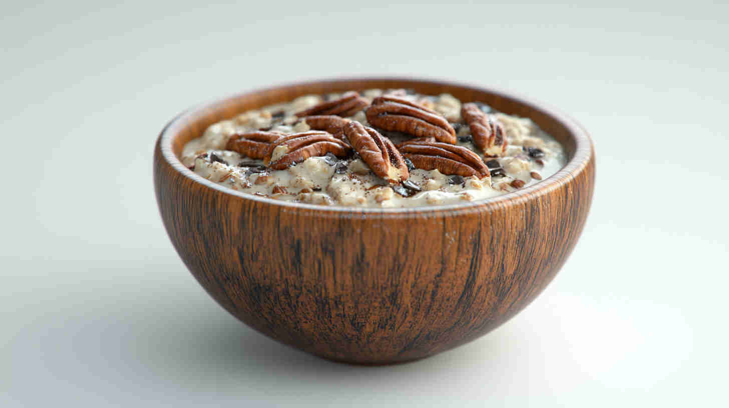A tiny pinch of salt enhances all the flavors and balances sweetness. Optional chia seeds thicken the texture further and add omega-3s. Simple, nutrient-dense, naturally gluten-free (with certified oats), and pantry-friendly—real maple syrup and toasted pecans are the stars here.