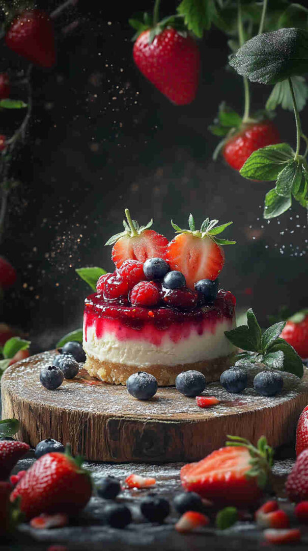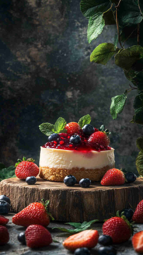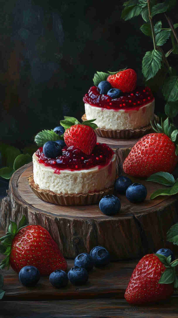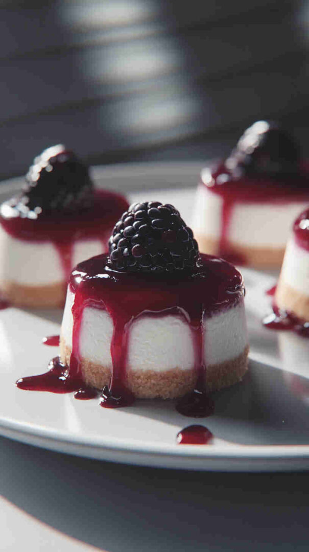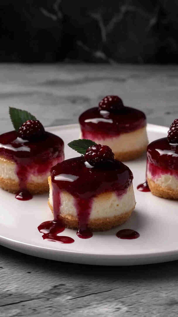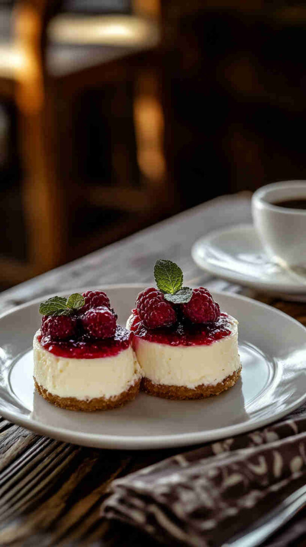 Creamy mini cheesecakes topped with vibrant berry compote—perfect Easter bite-sized delight.