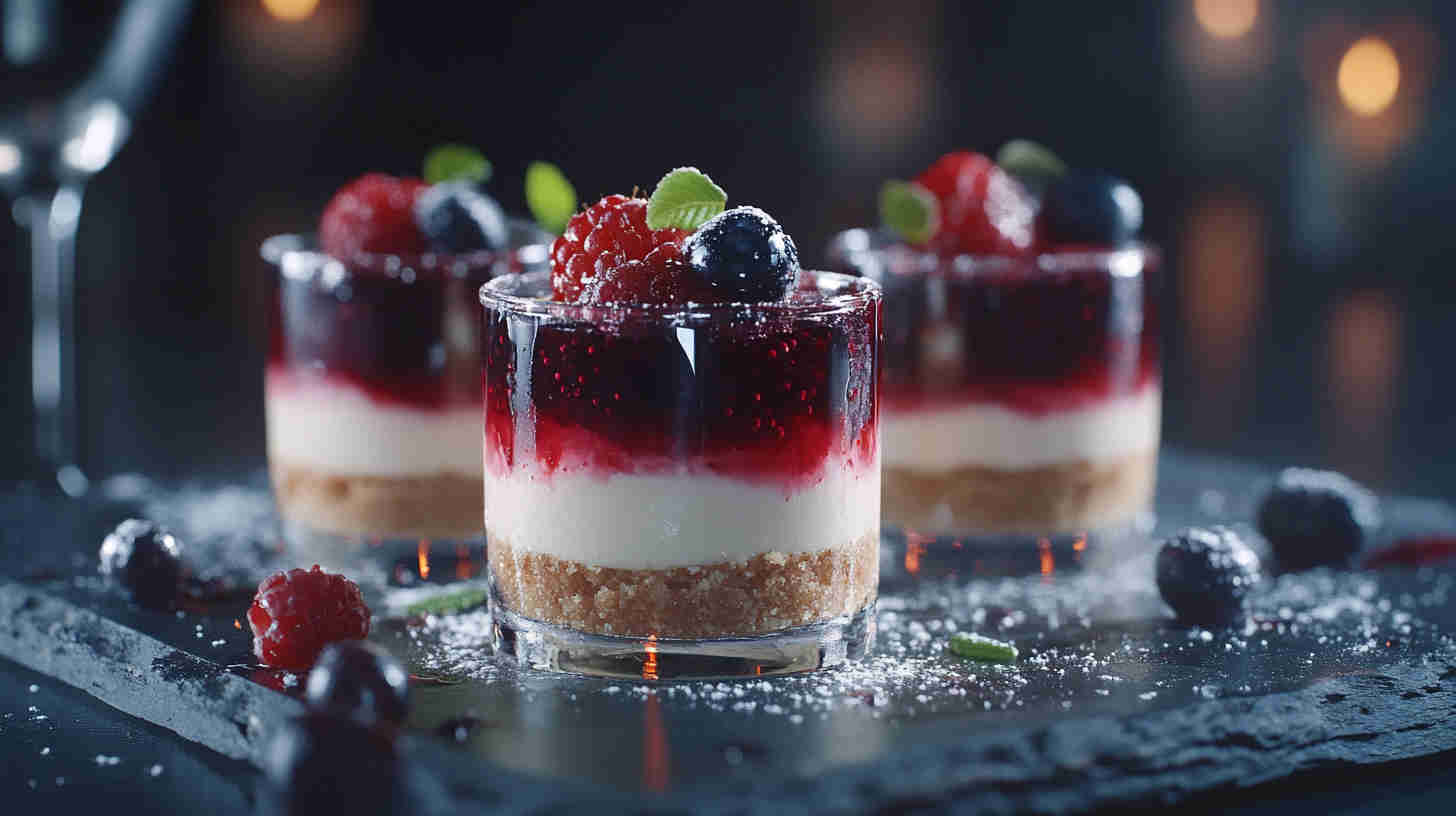 Creamy mini cheesecakes topped with vibrant berry compote—perfect Easter bite-sized delight.