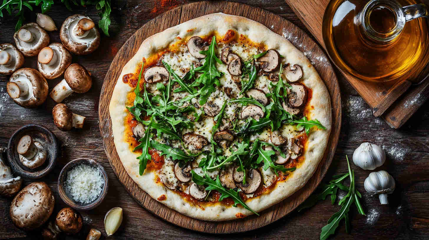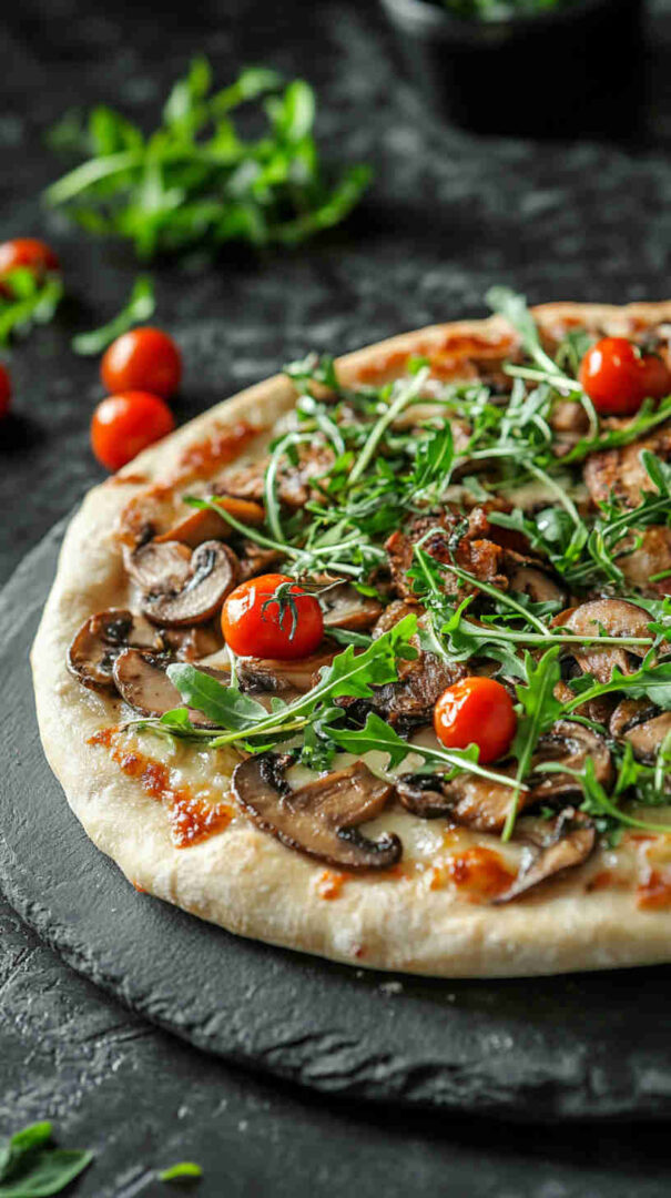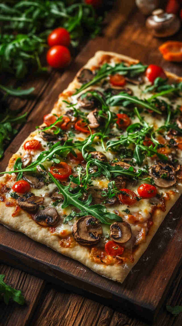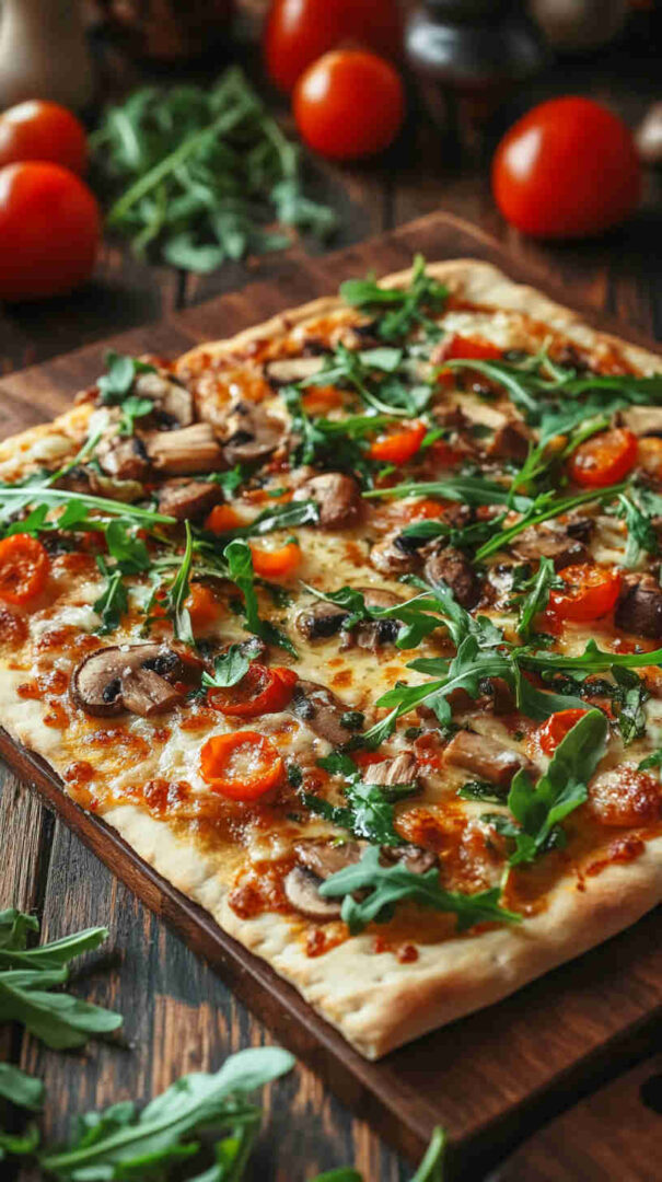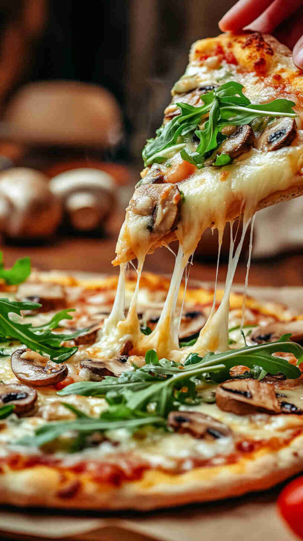 - Slice, serve, and enjoy the wow factor! — Let rest 1 minute, then cut into wedges or squares. Grab a slice, savor the crispy base, melty cheese, savory mushrooms, and bright arugula burst—pure gourmet bliss in minutes!