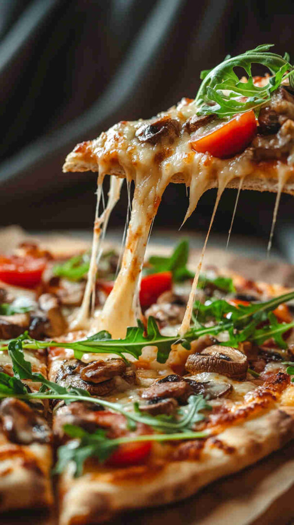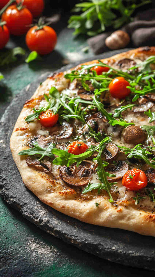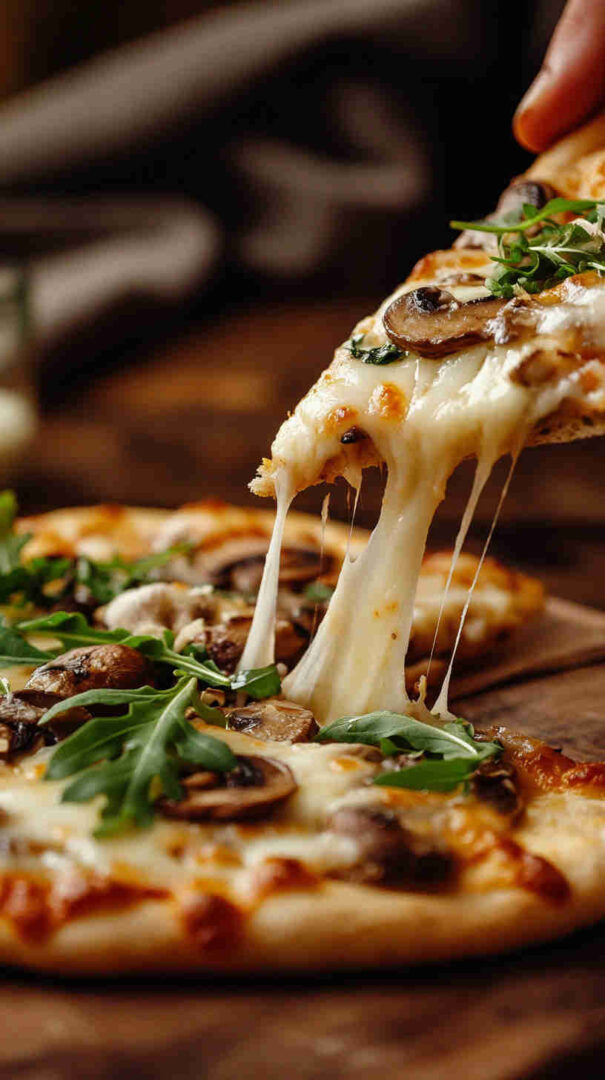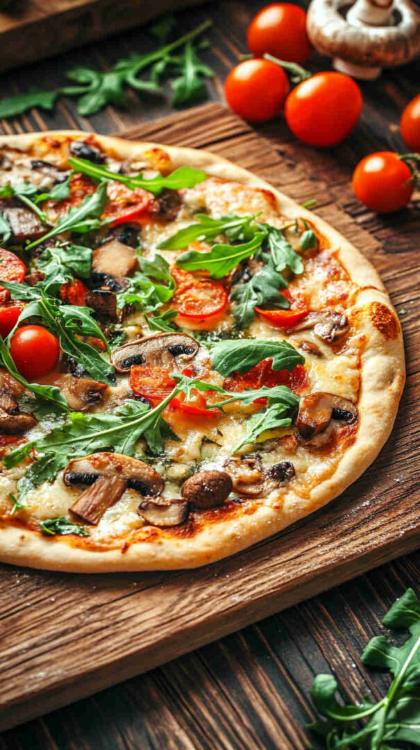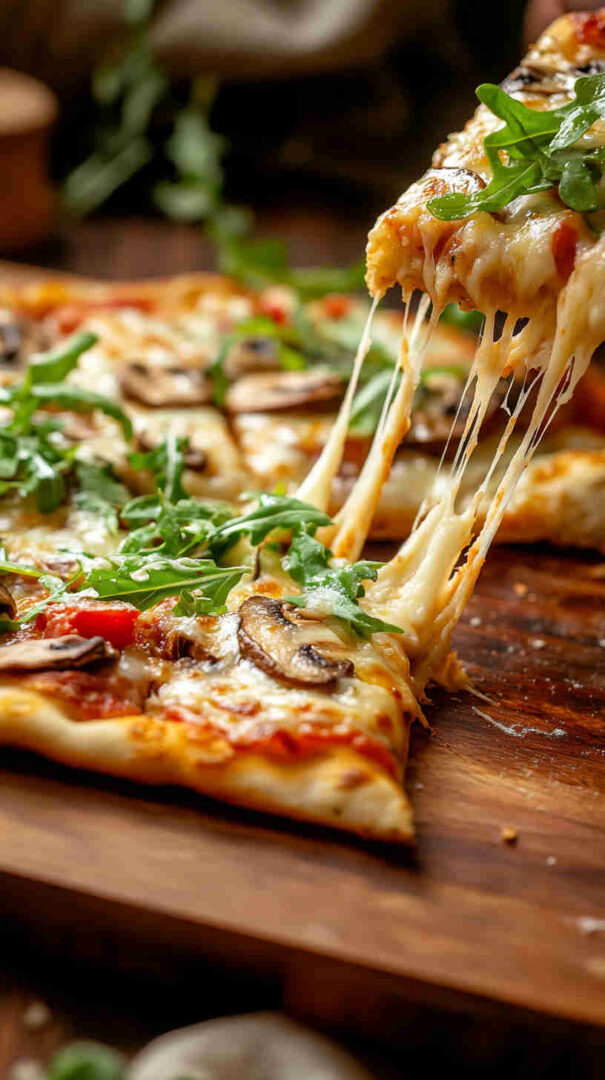 - Slice, serve, and enjoy the wow factor! — Let rest 1 minute, then cut into wedges or squares. Grab a slice, savor the crispy base, melty cheese, savory mushrooms, and bright arugula burst—pure gourmet bliss in minutes!