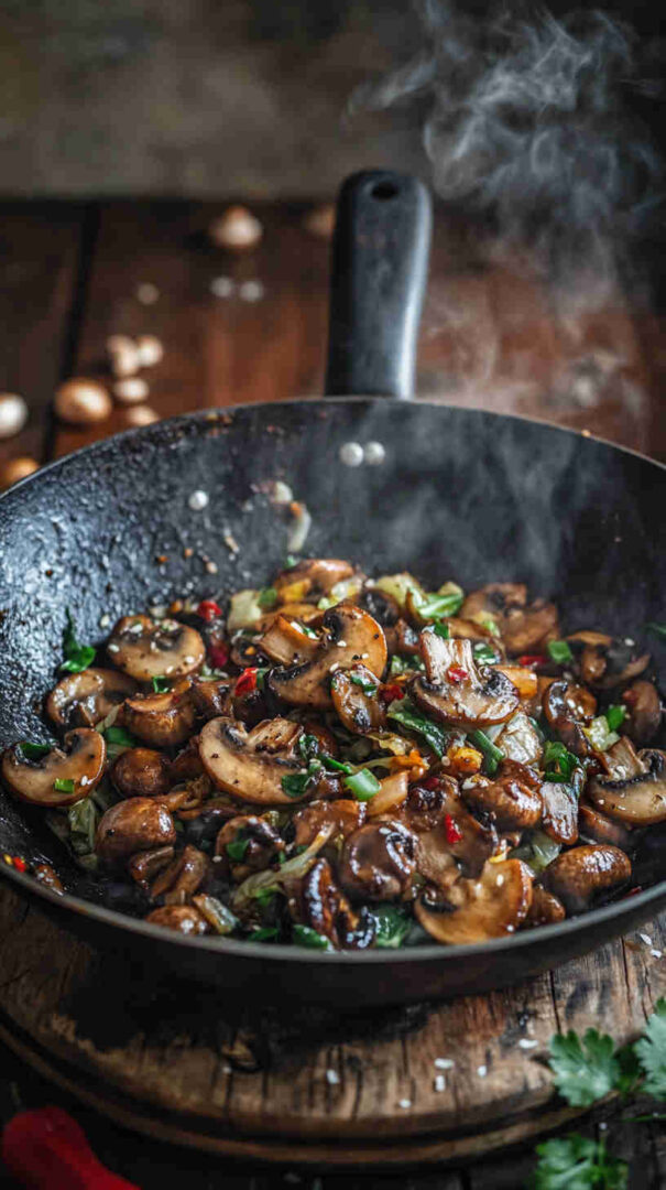 - Toss in the sliced mushrooms first (they love the spotlight). Stir-fry for 4-5 minutes until they turn golden brown and release their moisture—don't stir too much at first so they get those yummy caramelized edges!