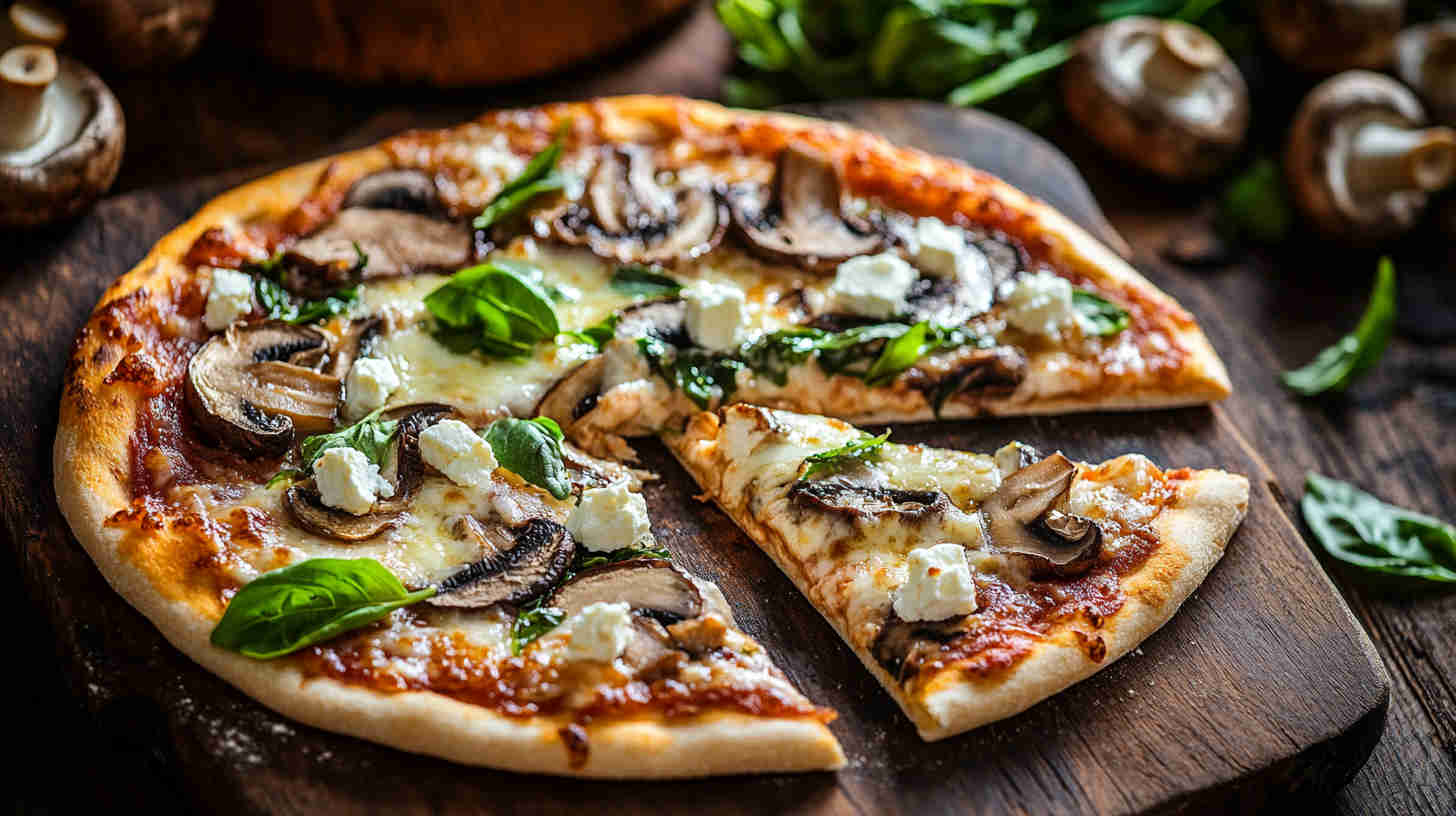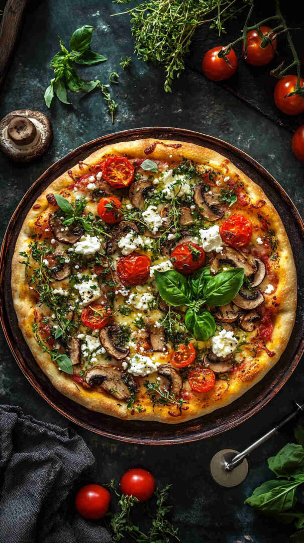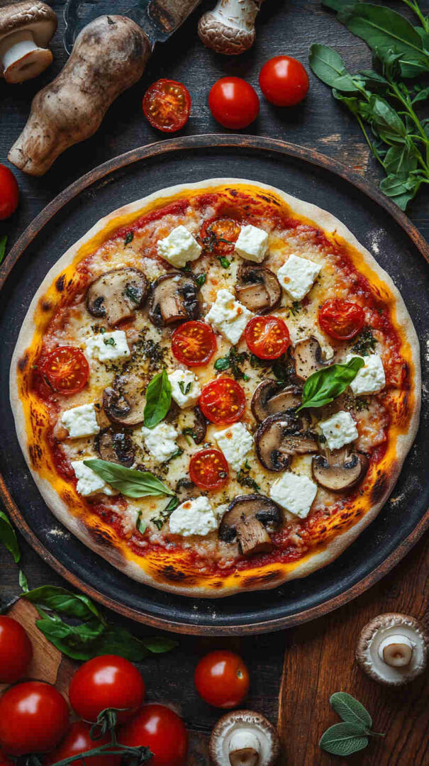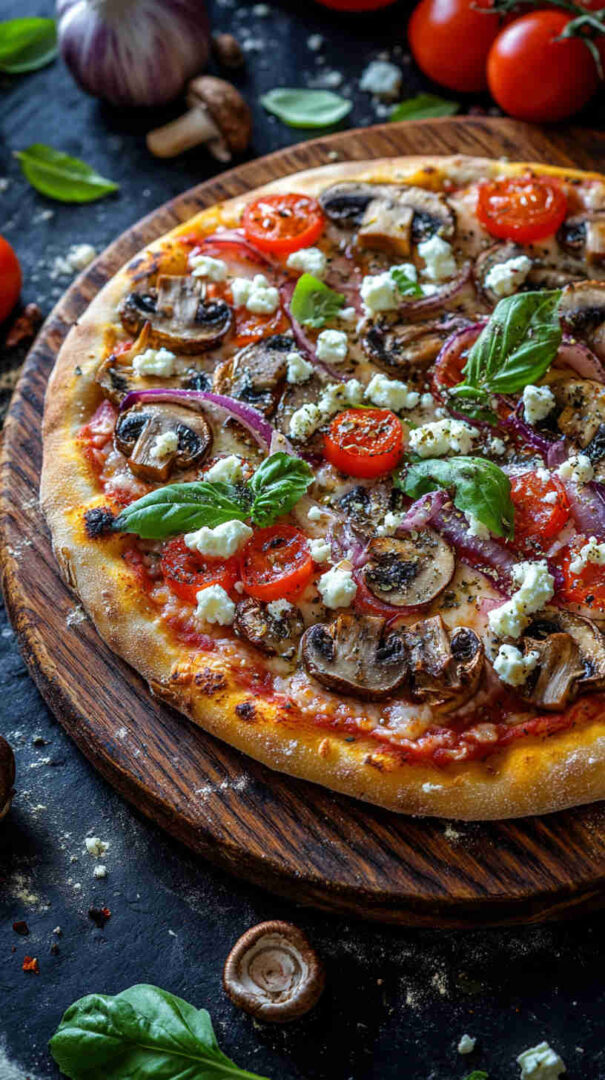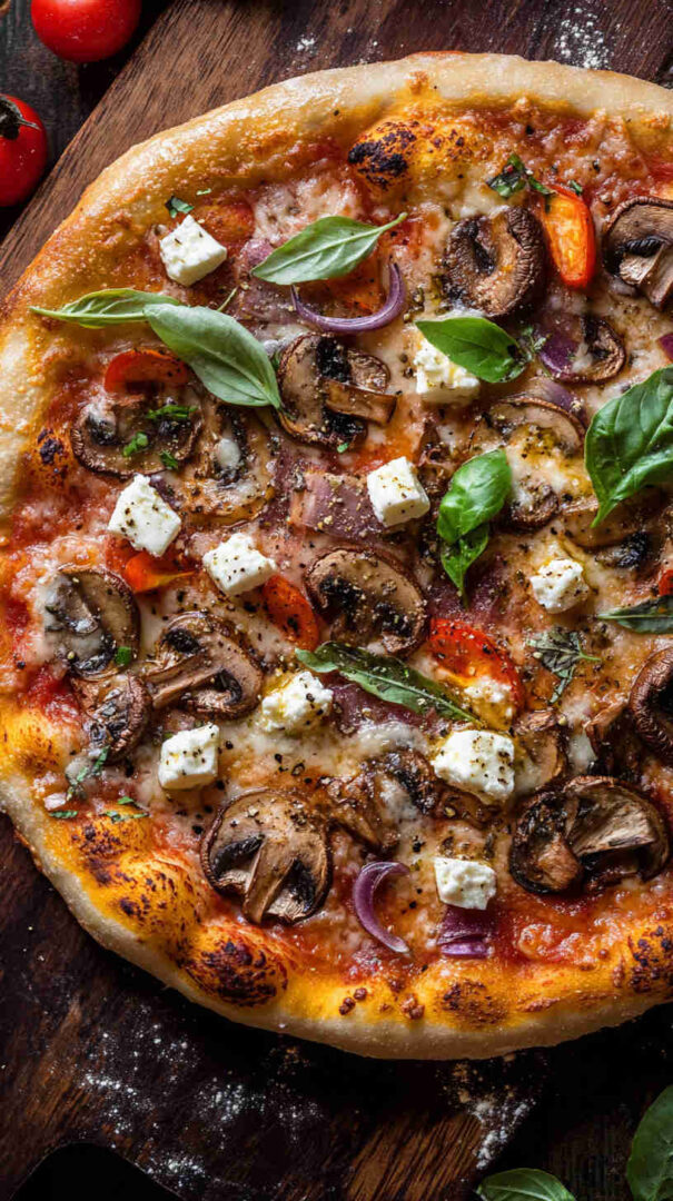 Tangy feta and earthy mushrooms on crispy crust—fresh, Mediterranean-inspired vegetarian pizza that's light and flavorful!