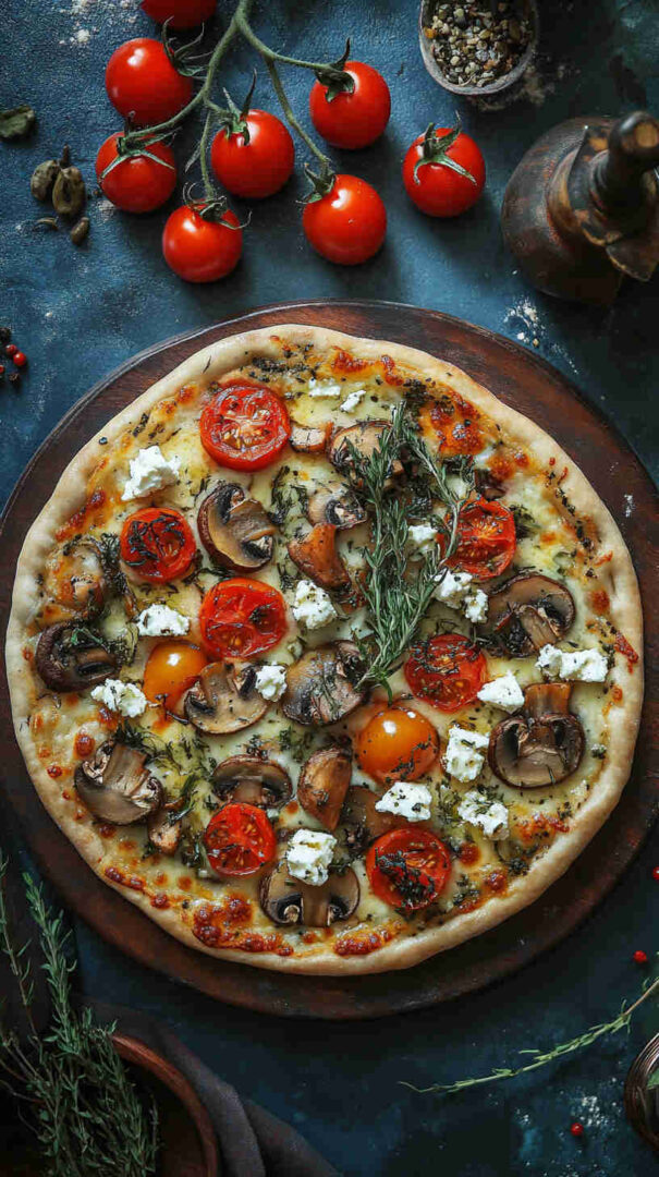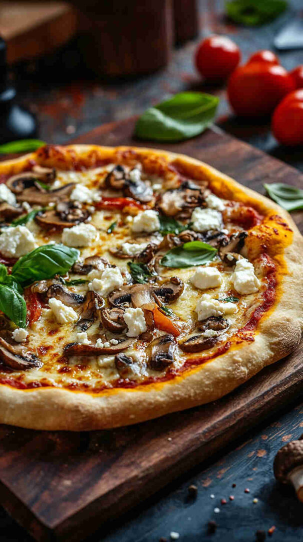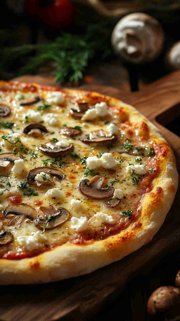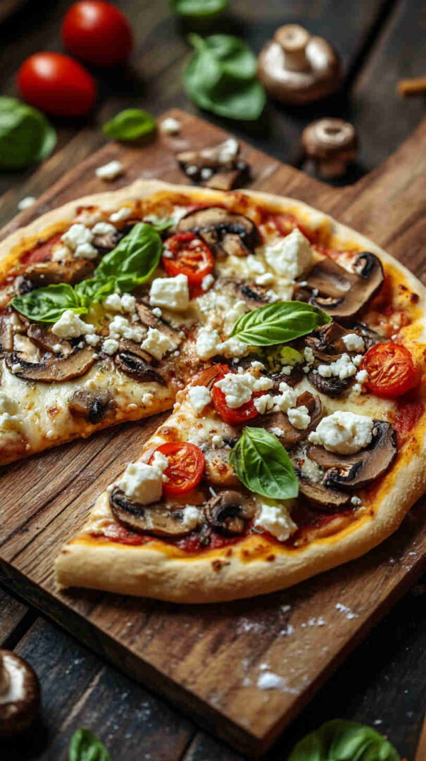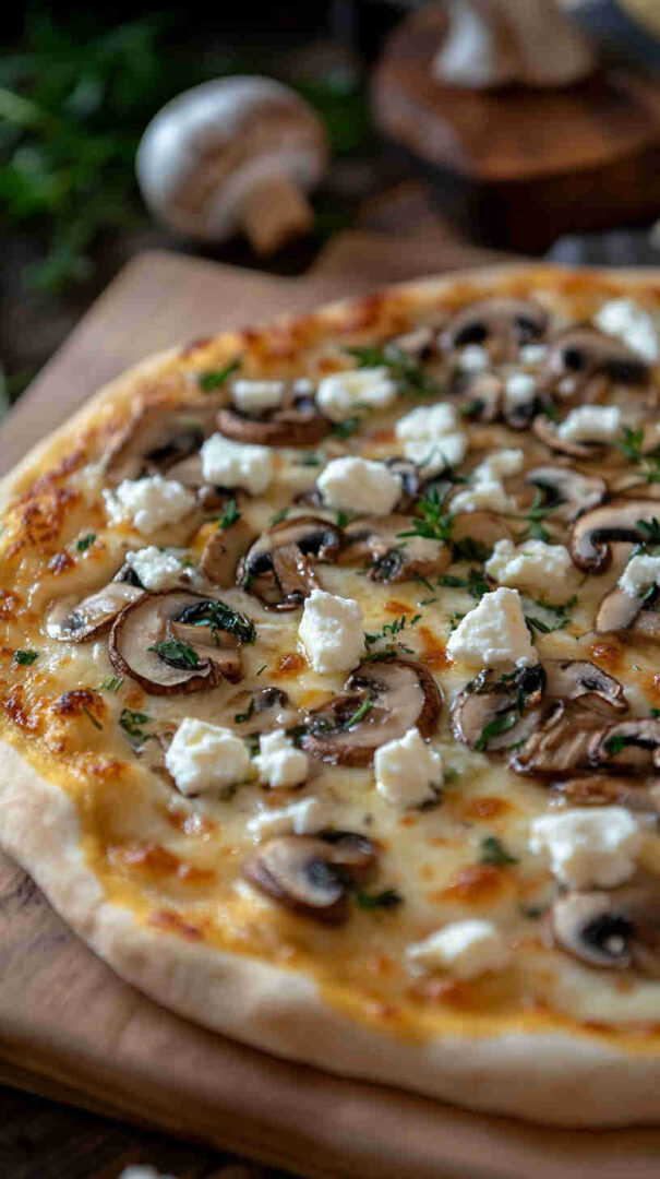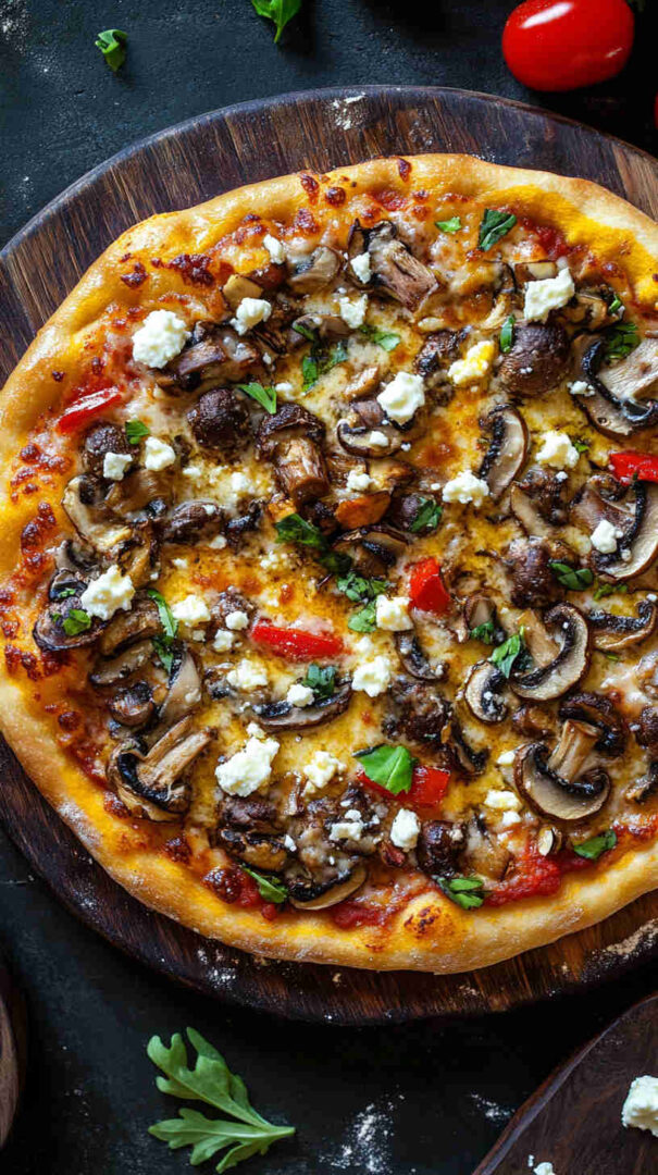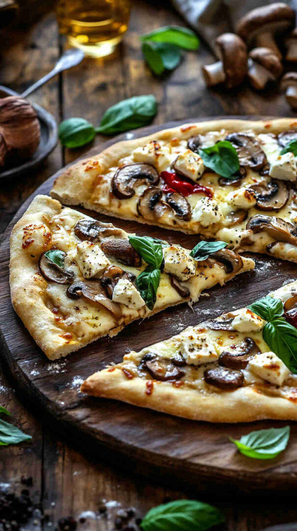 It’s a Mediterranean-inspired vegetarian pizza that balances earthy mushroom savoriness with the bright, salty tang of feta—light yet flavorful, perfect for a quick gourmet meal or appetizer that feels fresh and sophisticated. (about 50 words)