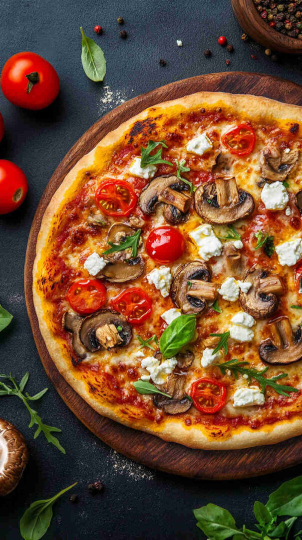 - Slide the pizza onto the hot stone/sheet. Bake 12-15 minutes until crust is golden, edges puffed, and cheese bubbly with light browning. Rest 5 minutes, garnish with fresh herbs, slice into wedges, and enjoy the irresistible tangy-mushroom goodness!