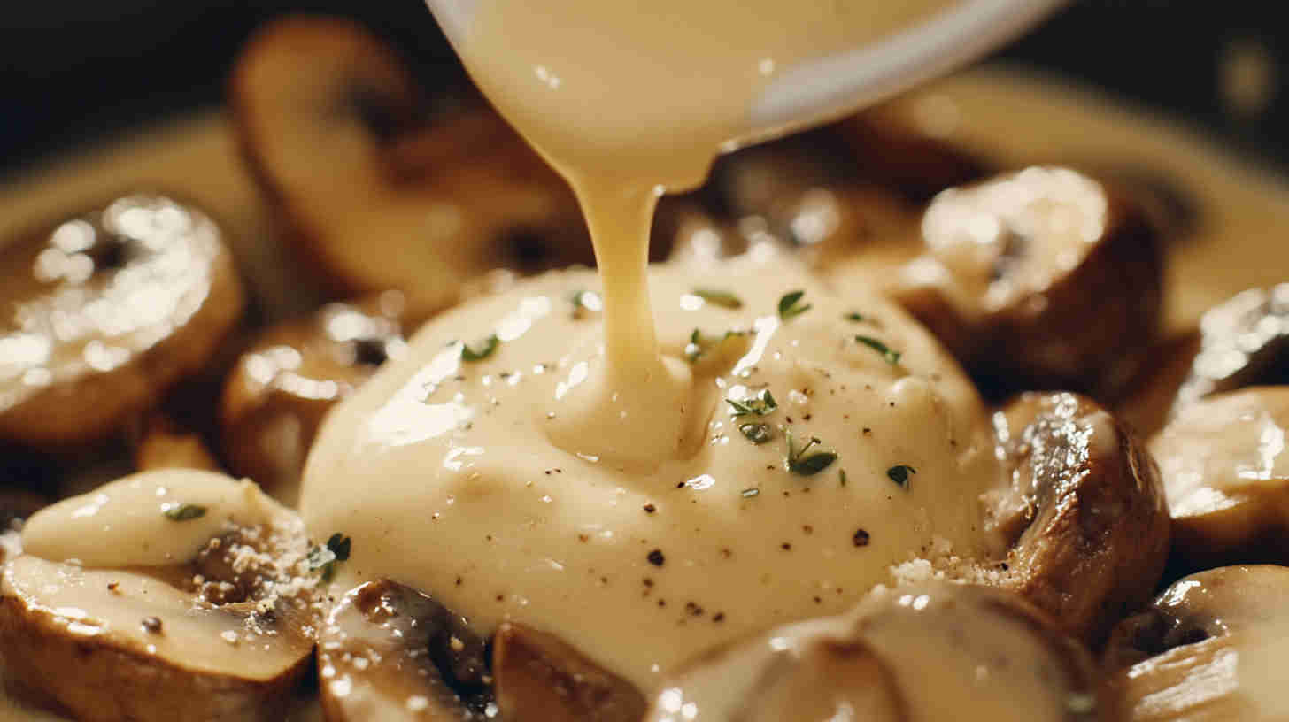 This Mushroom and Parmesan Sauce is a luxurious, nutty, and deeply savory sauce where golden sautéed mushrooms meld into a silky cream base enriched with freshly grated parmesan cheese.