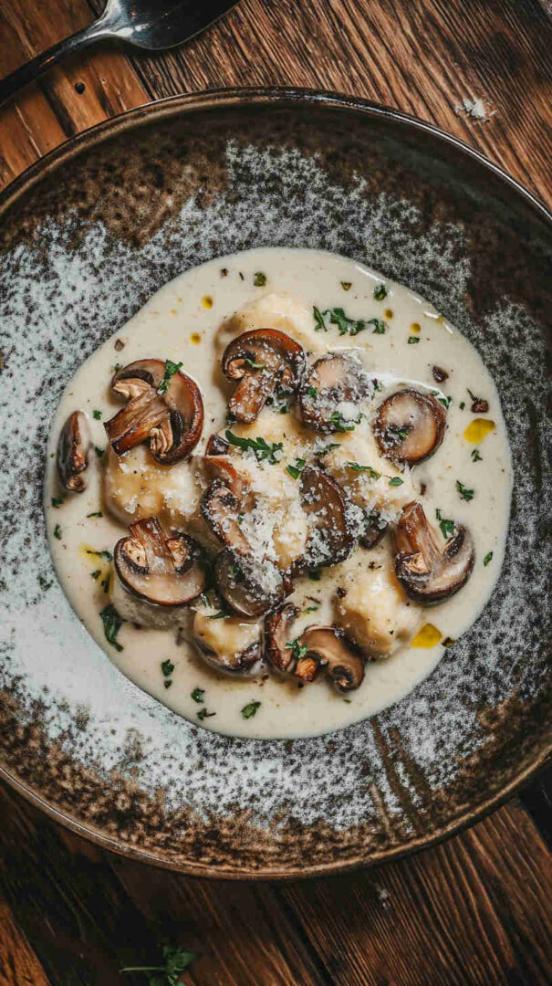 Nutty, creamy parmesan mushroom sauce—rich and irresistible.