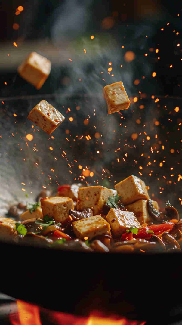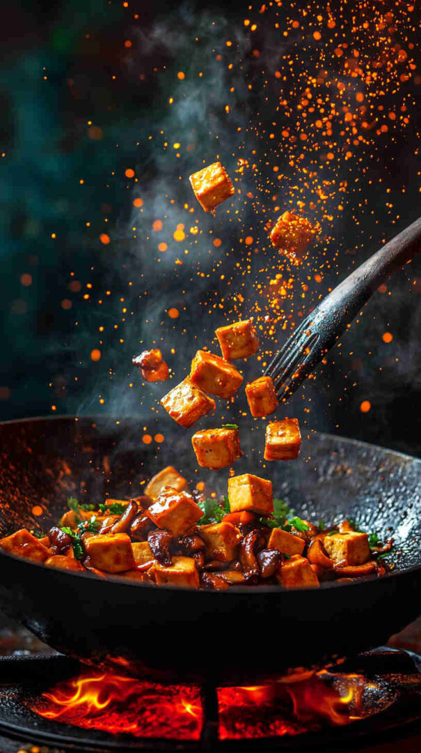Toasted sesame oil: Finishing drizzle—nutty aroma preserved off heat. Vegetable oil: High smoke point (peanut/canola)—neutral for searing. Cornstarch: For tofu crispiness and sauce thickening.