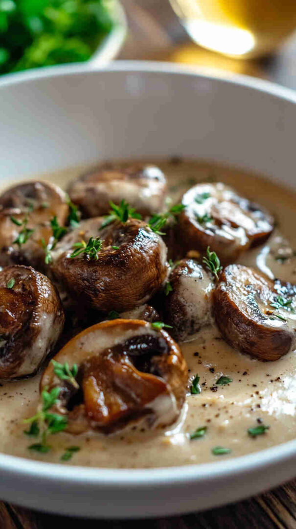 - Prep your mise en place — Slice mushrooms evenly, chop shallot, mince garlic, strip thyme leaves, measure wine and cream. Everything ready makes cooking smooth and enjoyable!