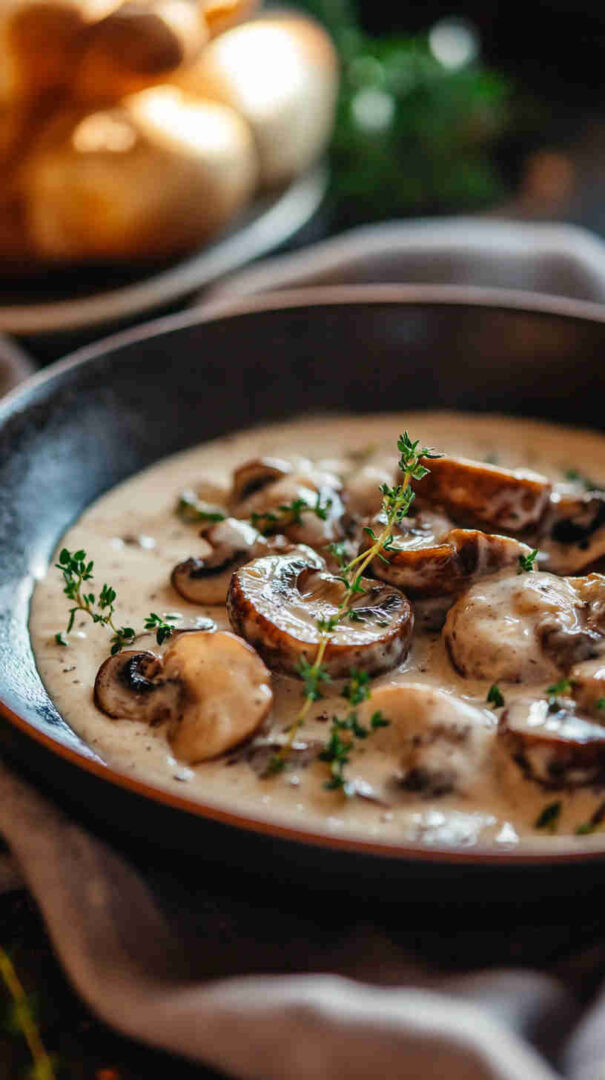 This sauce is pure sophistication in a pan—sophisticated enough for date night or dinner guests, yet simple enough for any weeknight. The white wine brings a clean, crisp acidity that balances the deep umami of mushrooms and the richness of cream, while fresh thyme adds that classic French-bistro herbal note.