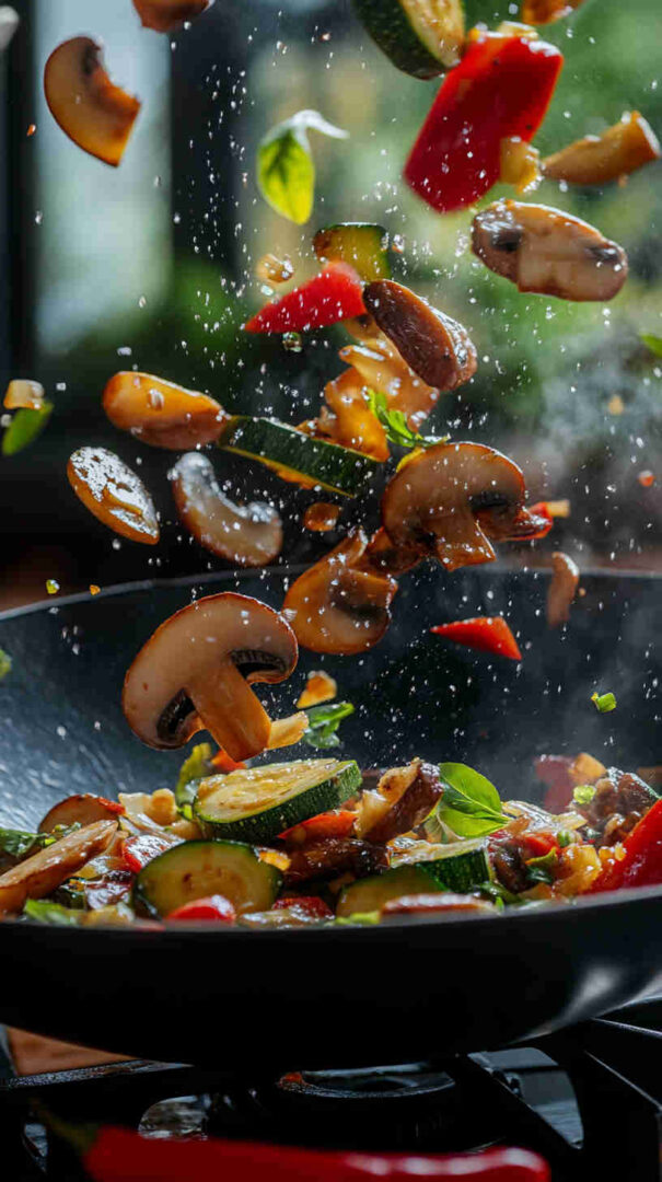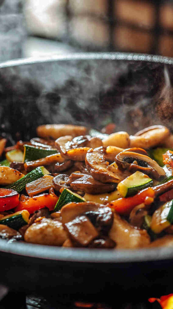 This quick Mushroom and Zucchini Stir-Fry combines golden mushrooms and crisp-tender zucchini ribbons or slices with garlic, ginger, and a light soy-sesame sauce. It’s a vibrant, vegan main dish packed with earthy umami, fresh green crunch, and subtle nutty notes—ready in under 20 minutes and perfect over rice or noodles.