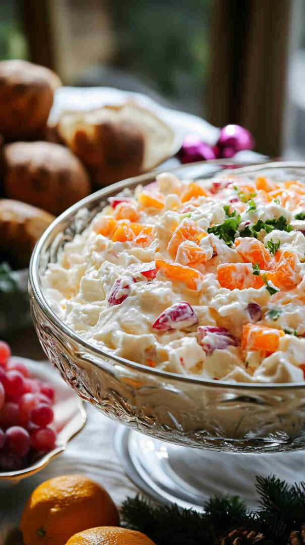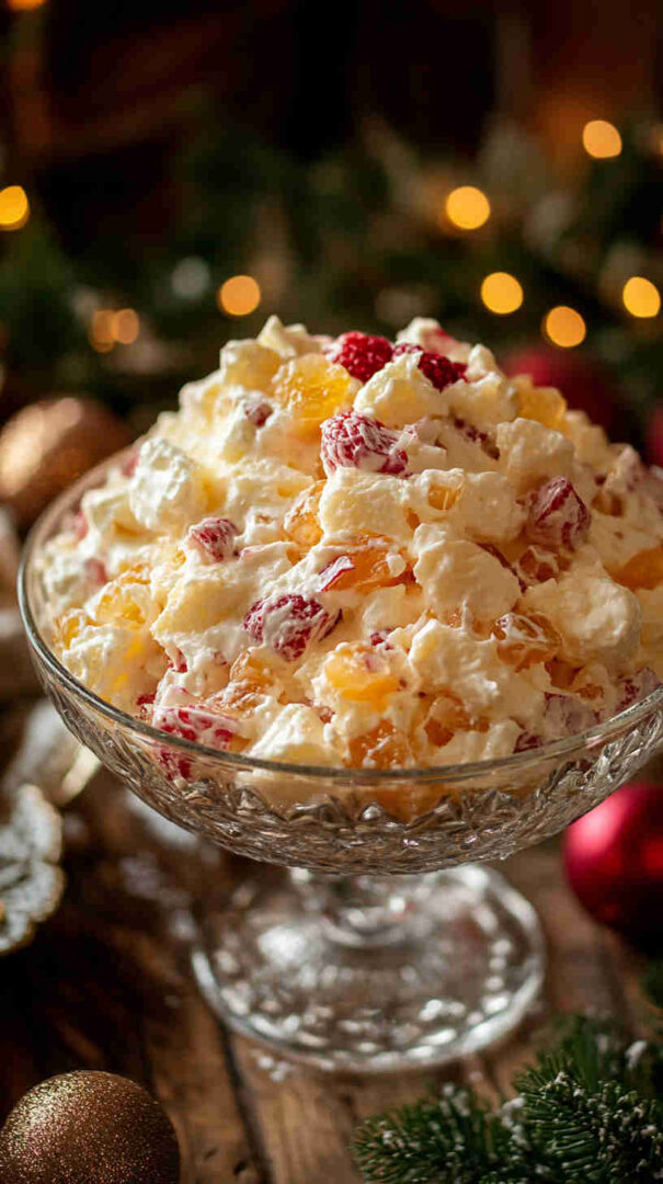 Creamy, fruity Southern classic with pineapple, oranges, cherries, marshmallows, and coconut—light, sweet, and perfect for any gathering.