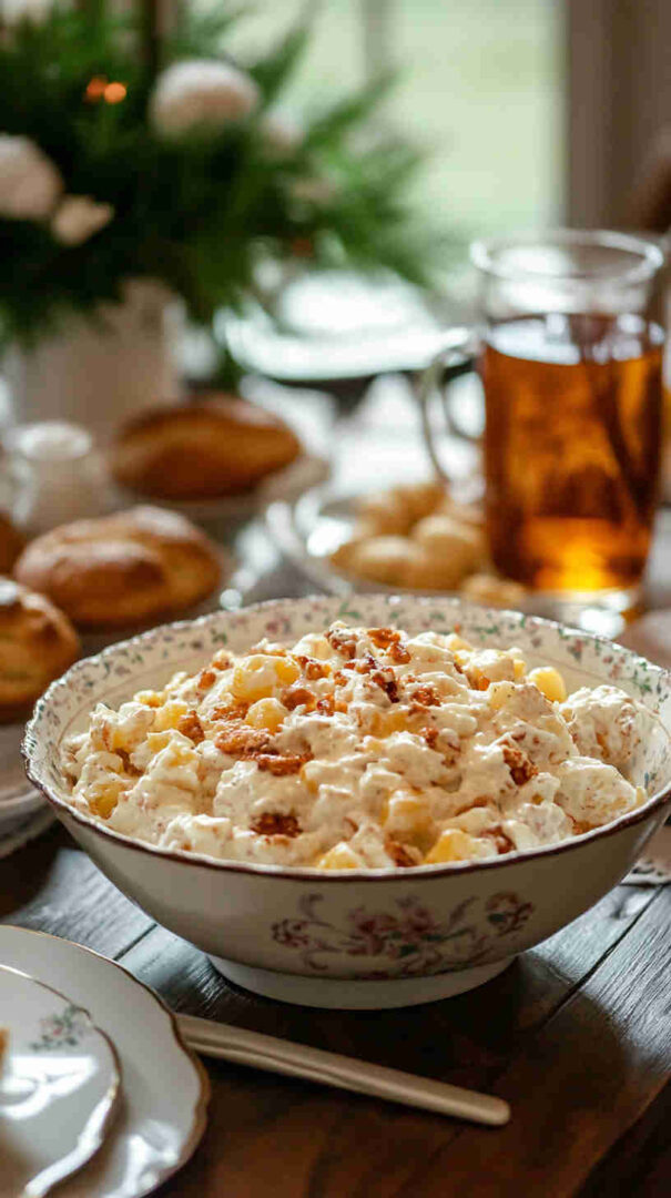 - Chill and serve with joy — Place the salad in the refrigerator for at least one hour (or up to overnight) so all the flavors can mingle and become even more delicious. Before serving, garnish with reserved cherries and a sprinkle of coconut. Scoop generously and watch everyone’s faces light up—this Old-Fashioned Southern Ambrosia Salad is pure happiness on a plate!