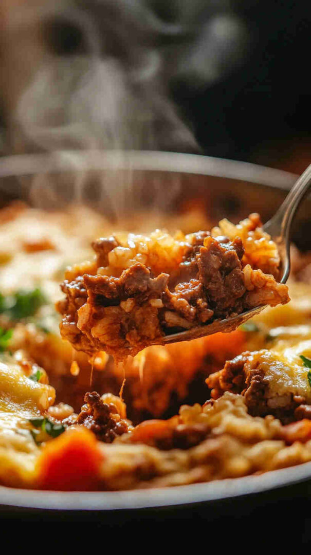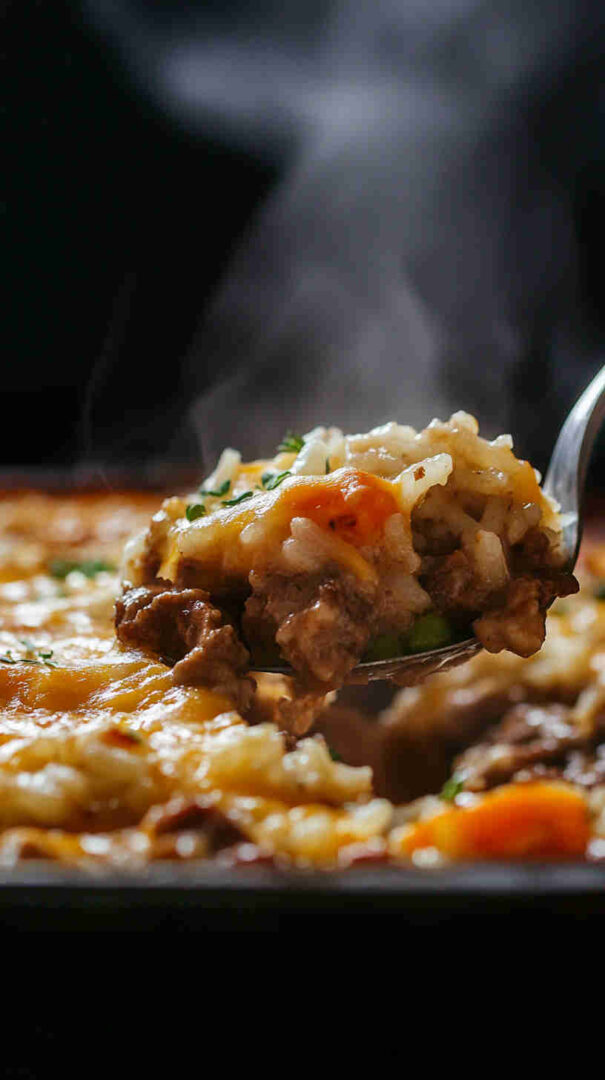 Hearty one-pot ground beef, rice, and cheesy comfort casserole—easy and family-favorite!