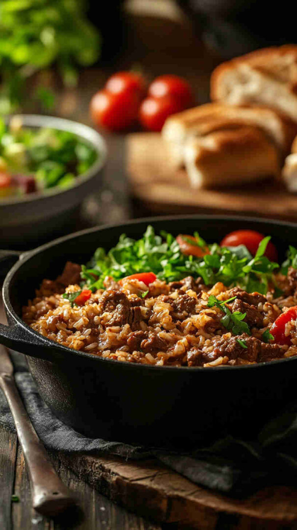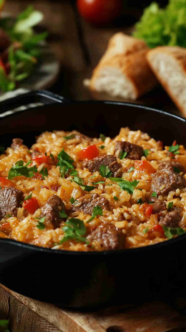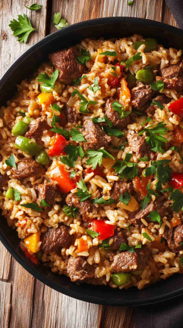 One-Pot Beef and Rice Casserole is the ultimate cozy comfort food: seasoned ground beef browned with onions and garlic, then simmered with uncooked long-grain rice in beef broth and cream of mushroom soup for creamy tenderness. Veggies like carrots, peas, and bell peppers add color and nutrition, while a generous cheesy topping melts into bubbly perfection—minimal dishes, maximum flavor in one pot!