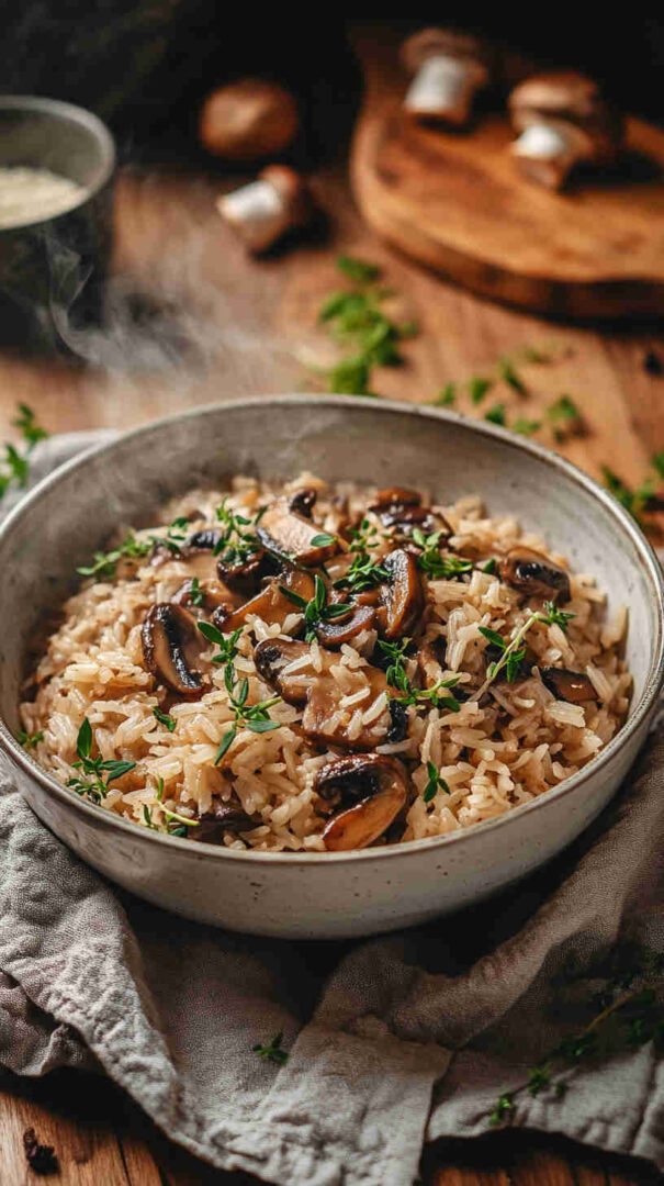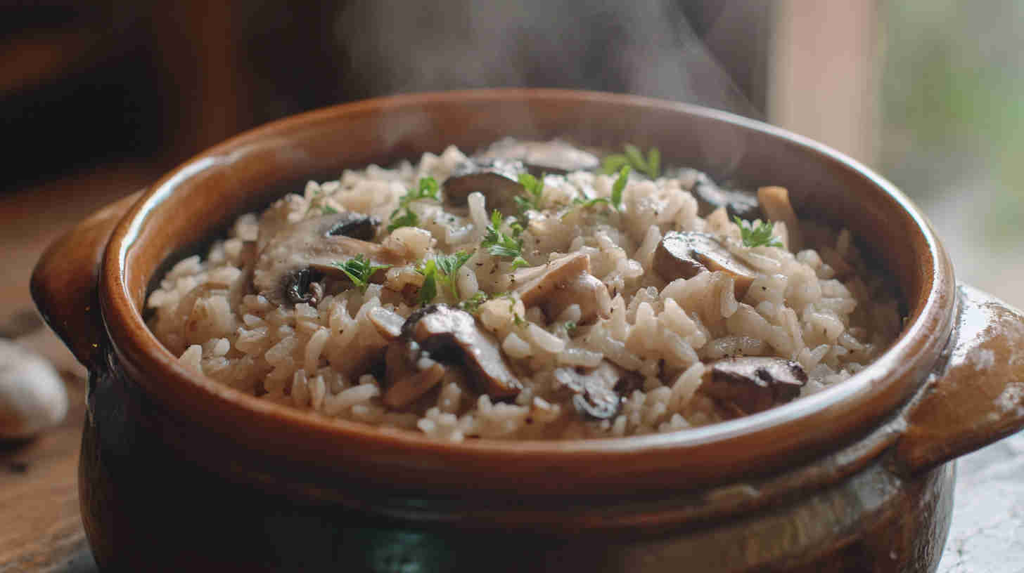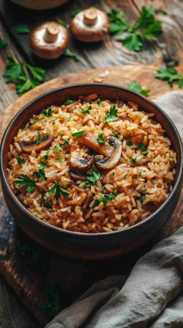 Easy one-pot savory mushroom rice, budget-friendly and full of flavor.