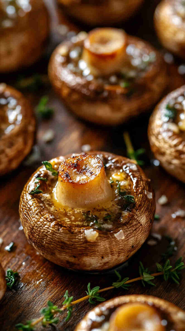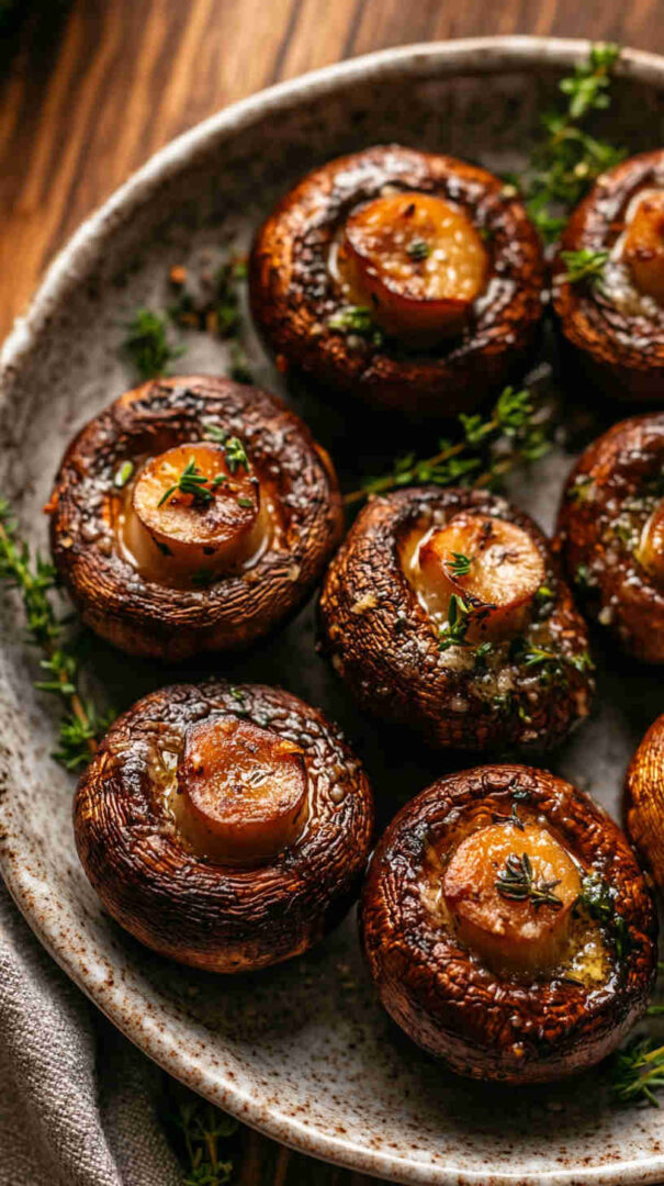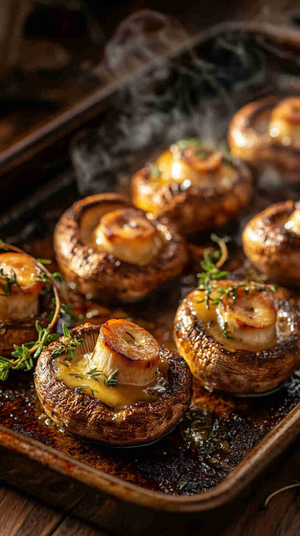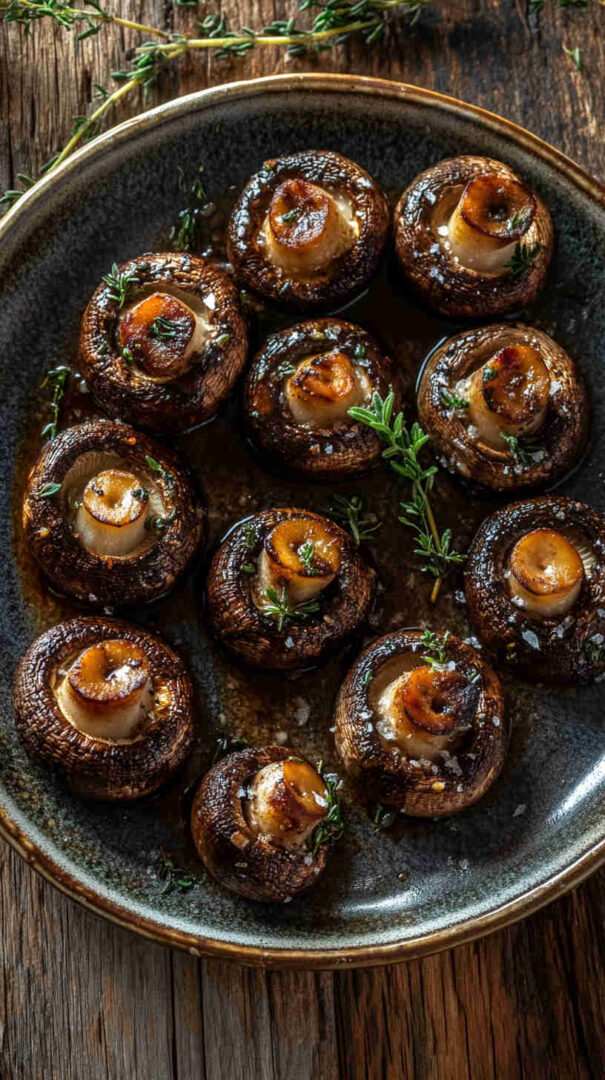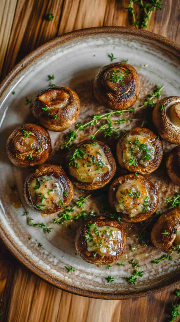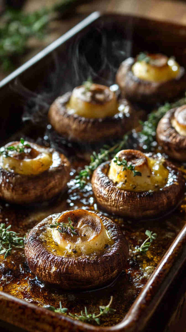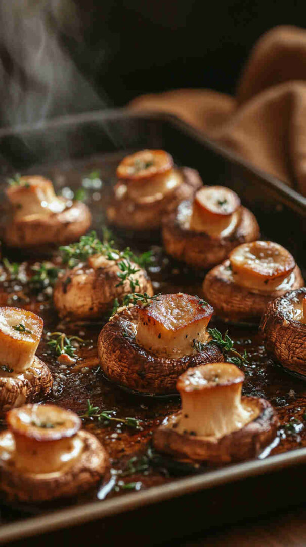 Tender button or cremini mushrooms roasted in the oven until golden, swimming in a rich garlic butter sauce infused with fragrant thyme. This easy, inexpensive dish delivers restaurant-quality flavor on a budget—minimal prep, maximum taste, and ready in under 30 minutes for weeknight dinners or elegant entertaining.