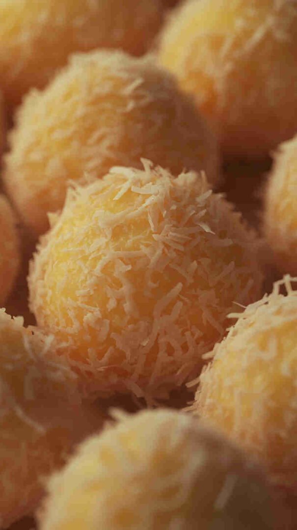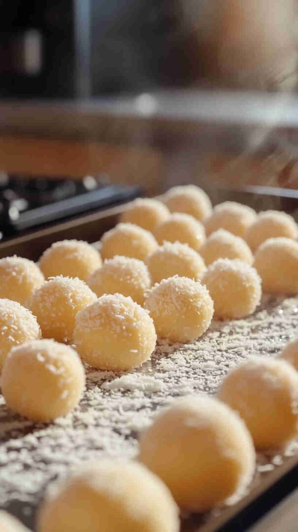 - Pour extra shredded coconut onto a plate and gently roll each ball around until it’s beautifully coated — this gives them that snowy, irresistible look and extra coconutty crunch!