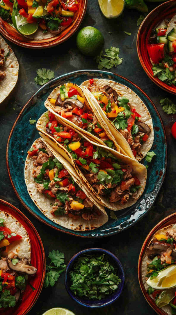 The combination creates a hearty yet not heavy filling that pairs perfectly with soft, warm tortillas. Every taco offers layers of flavor—spicy, earthy, tangy, and creamy—from the juicy pork, tender mushrooms, bright salsa, and cool avocado. It’s a fun, customizable meal that turns an ordinary evening into a festive taco party.