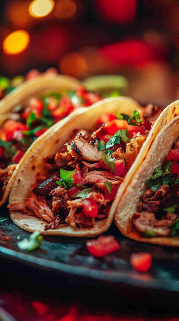 Corn or flour tortillas serve as the perfect vessel—soft and warm. Fresh toppings like diced tomatoes, red onion, cilantro, avocado, and lime bring brightness, creaminess, and freshness that balance the savory filling beautifully. A bit of cheese (queso fresco or shredded Mexican blend) adds a nice salty touch if desired.