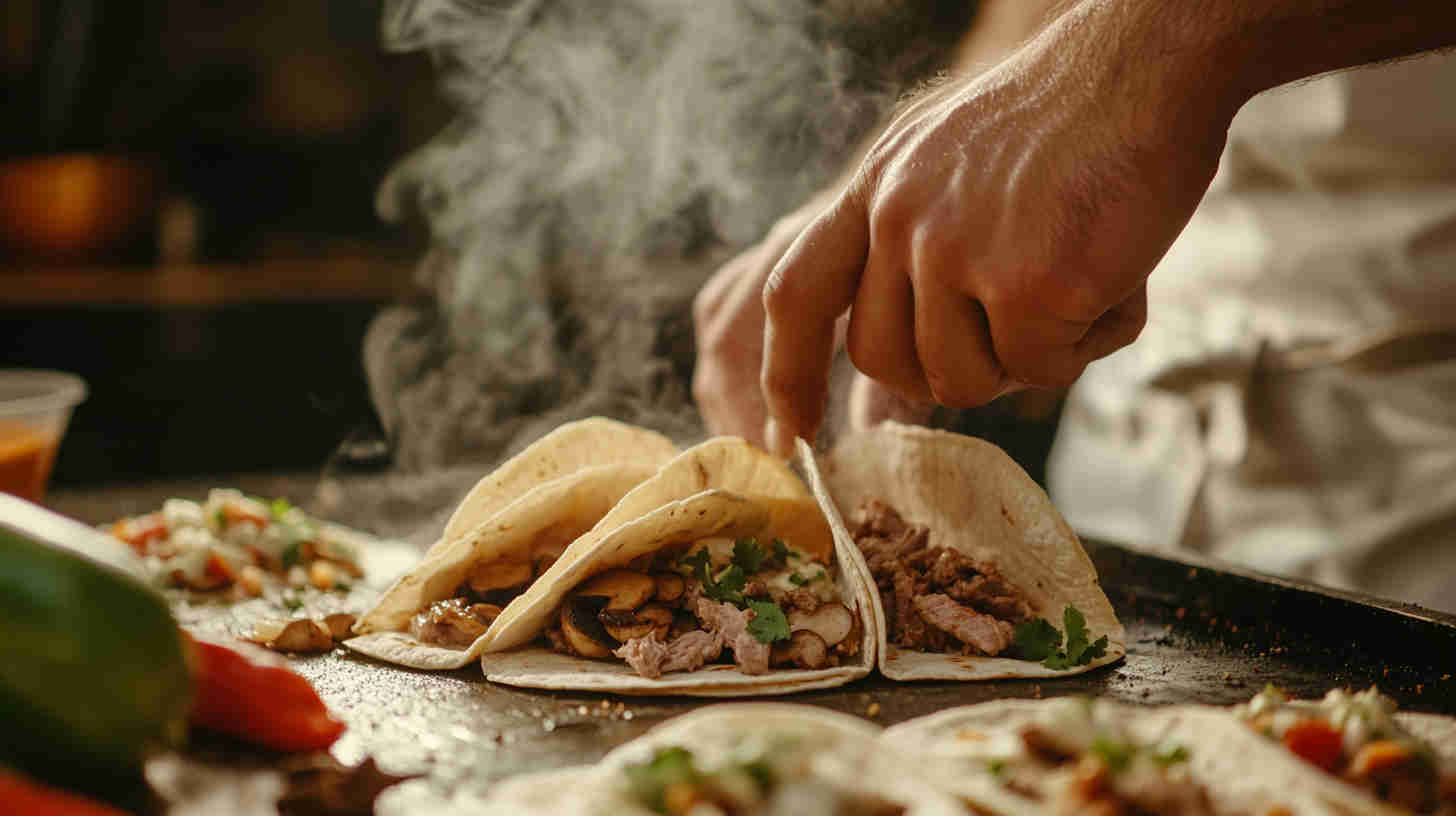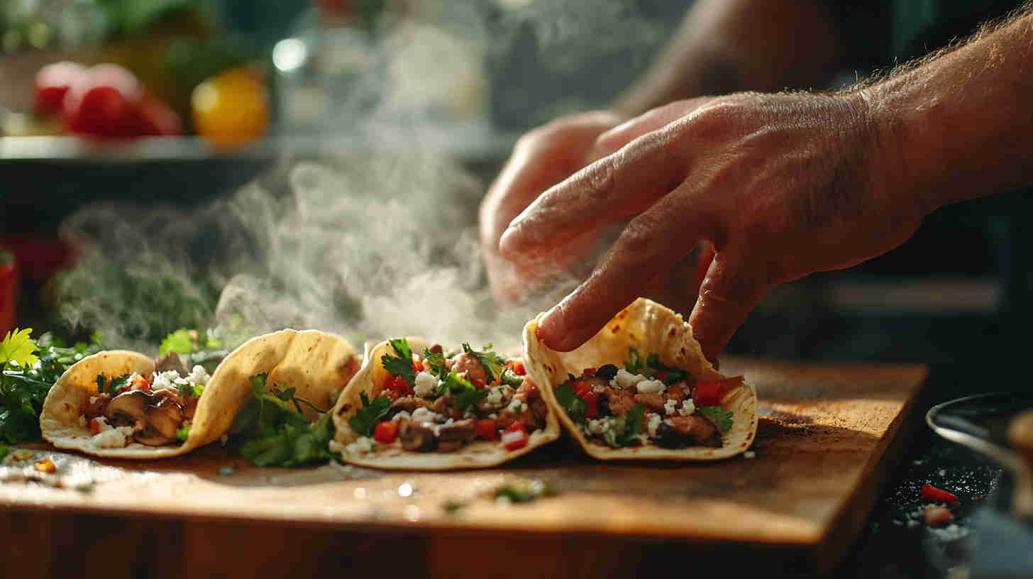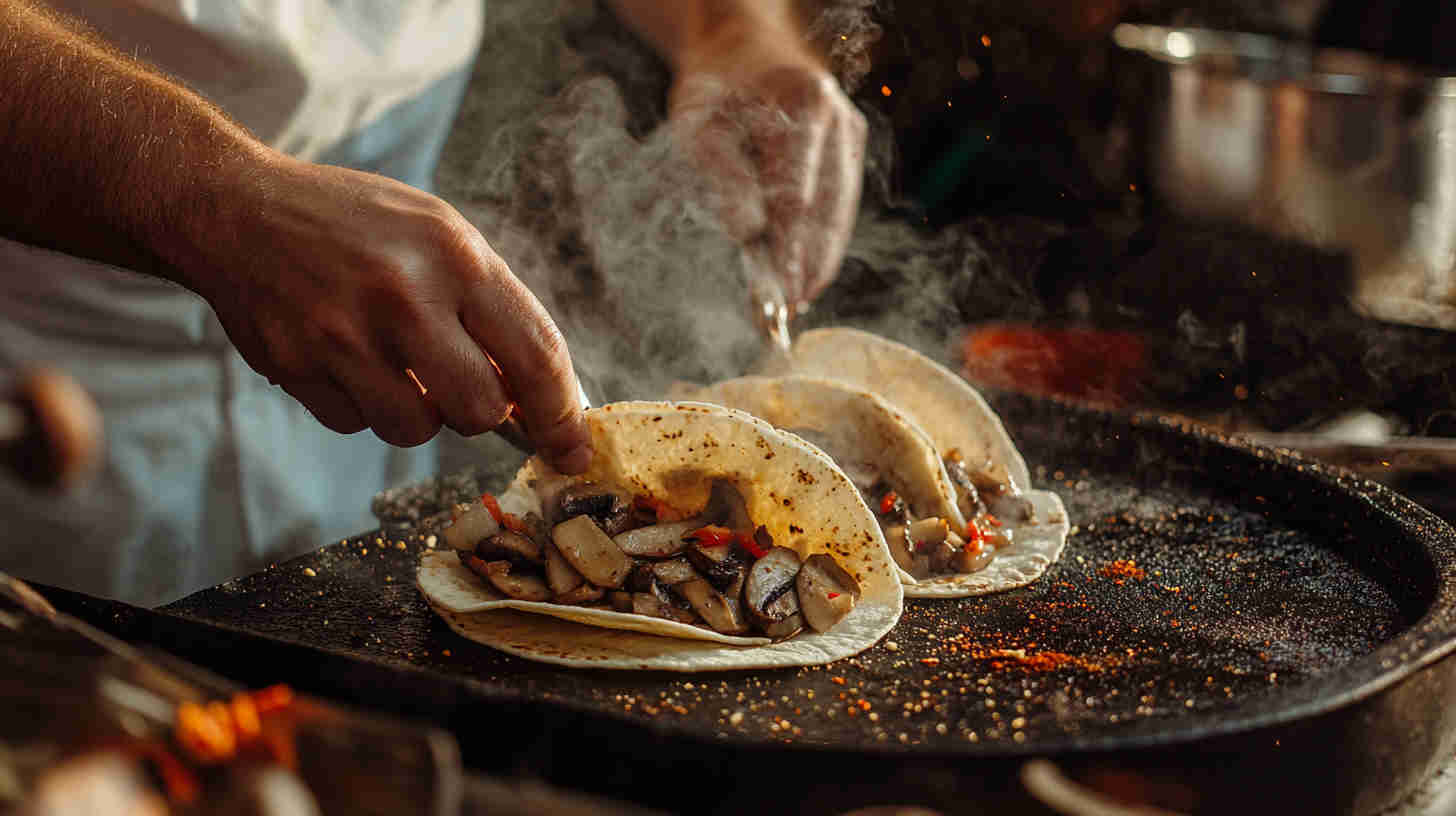 Create a breakfast version by adding scrambled eggs to the filling. Different salsas—pico de gallo, mango salsa, or tomatillo salsa—completely change the personality of the tacos while keeping the pork and mushroom base.