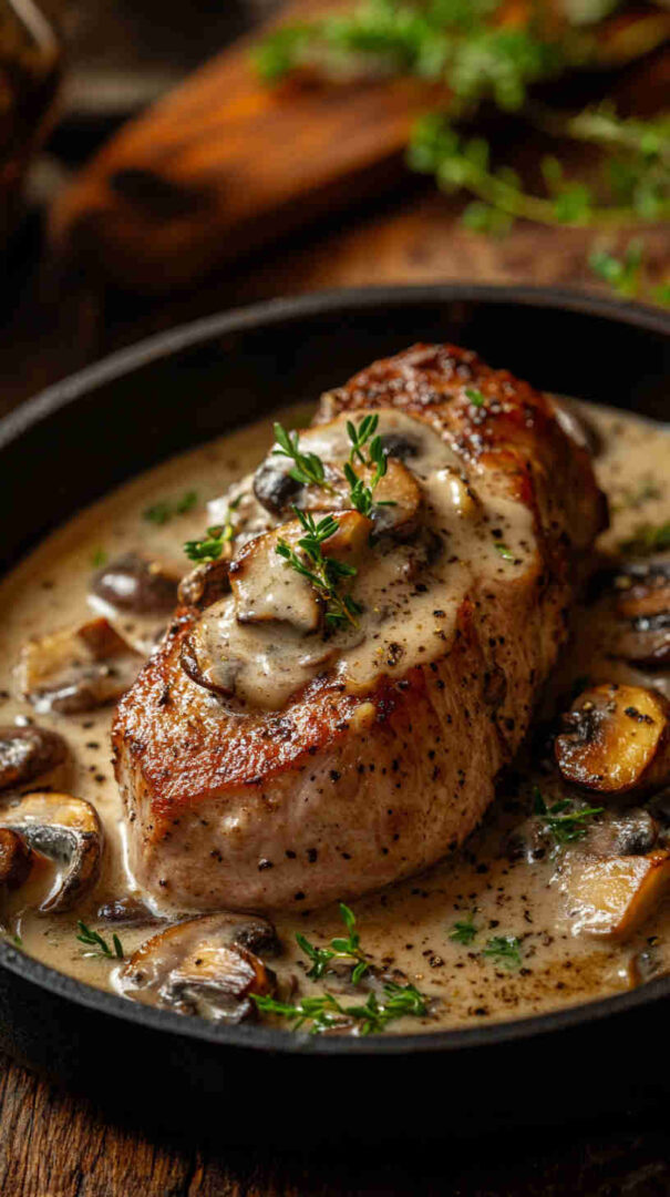 - Finish and serve with love – Remove from heat and swirl in a little extra butter if desired for extra gloss. Taste and adjust seasoning. Spoon the pork and luscious mushroom sauce onto warm plates, garnish with chopped fresh parsley, and serve immediately while everything is hot and inviting—pair with mashed potatoes or crusty bread to soak up every drop.
