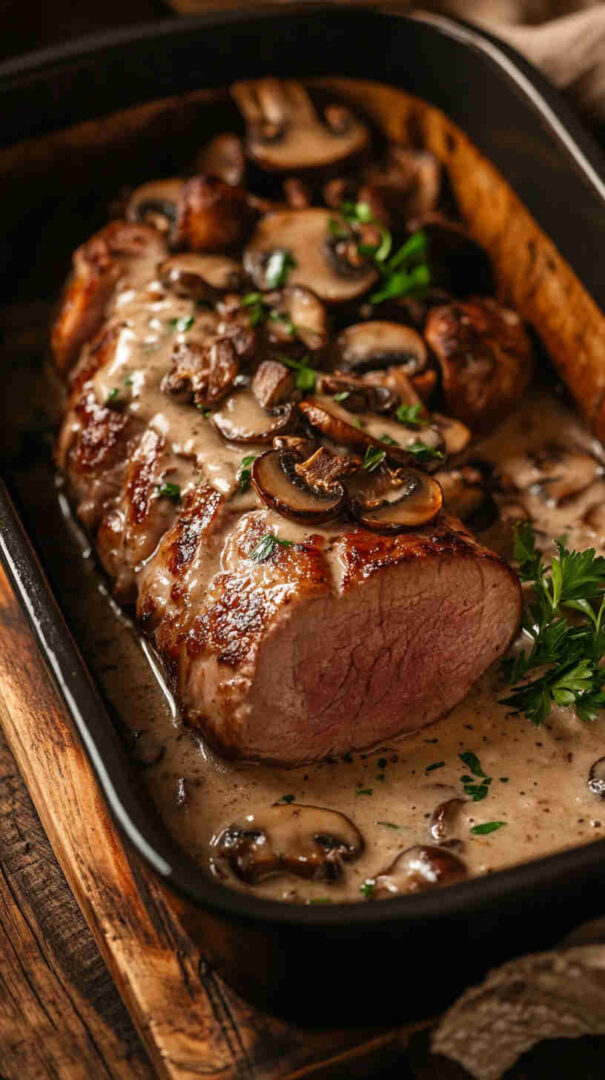 Juicy pork tenderloin with rich, creamy mushroom sauce—elegant, comforting, and ready in under 40 minutes.