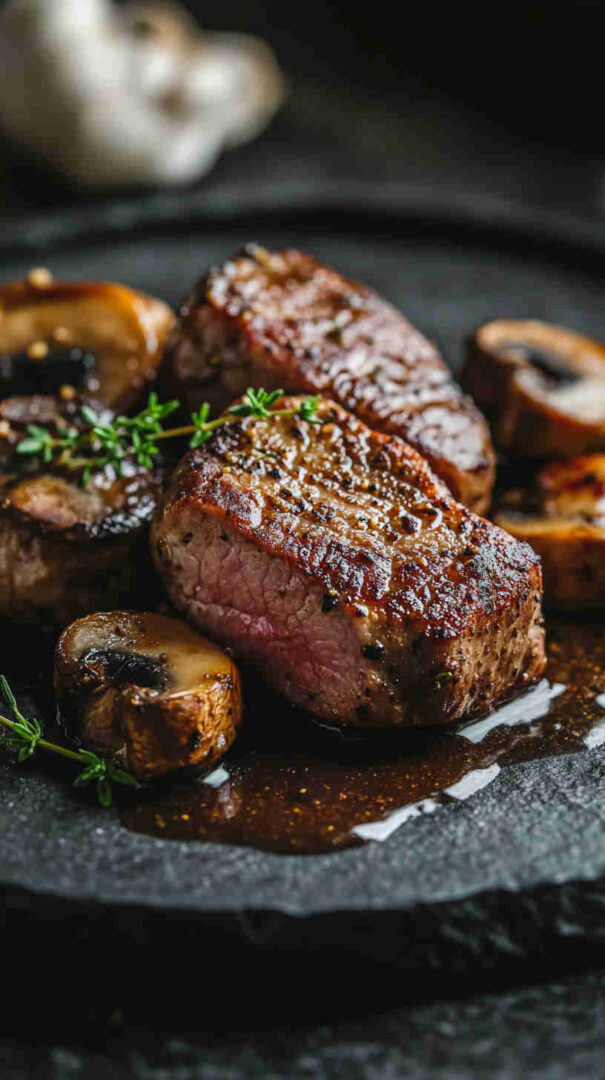 - Slice and combine – After resting, slice the pork tenderloin into medallions. Return the slices and any resting juices to the pan with the mushroom sauce. Simmer gently for 1-2 minutes to warm through and marry the flavors.
